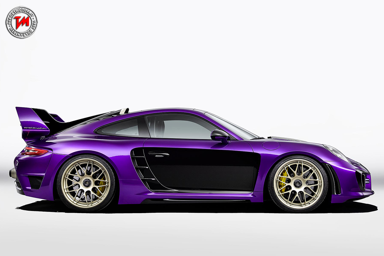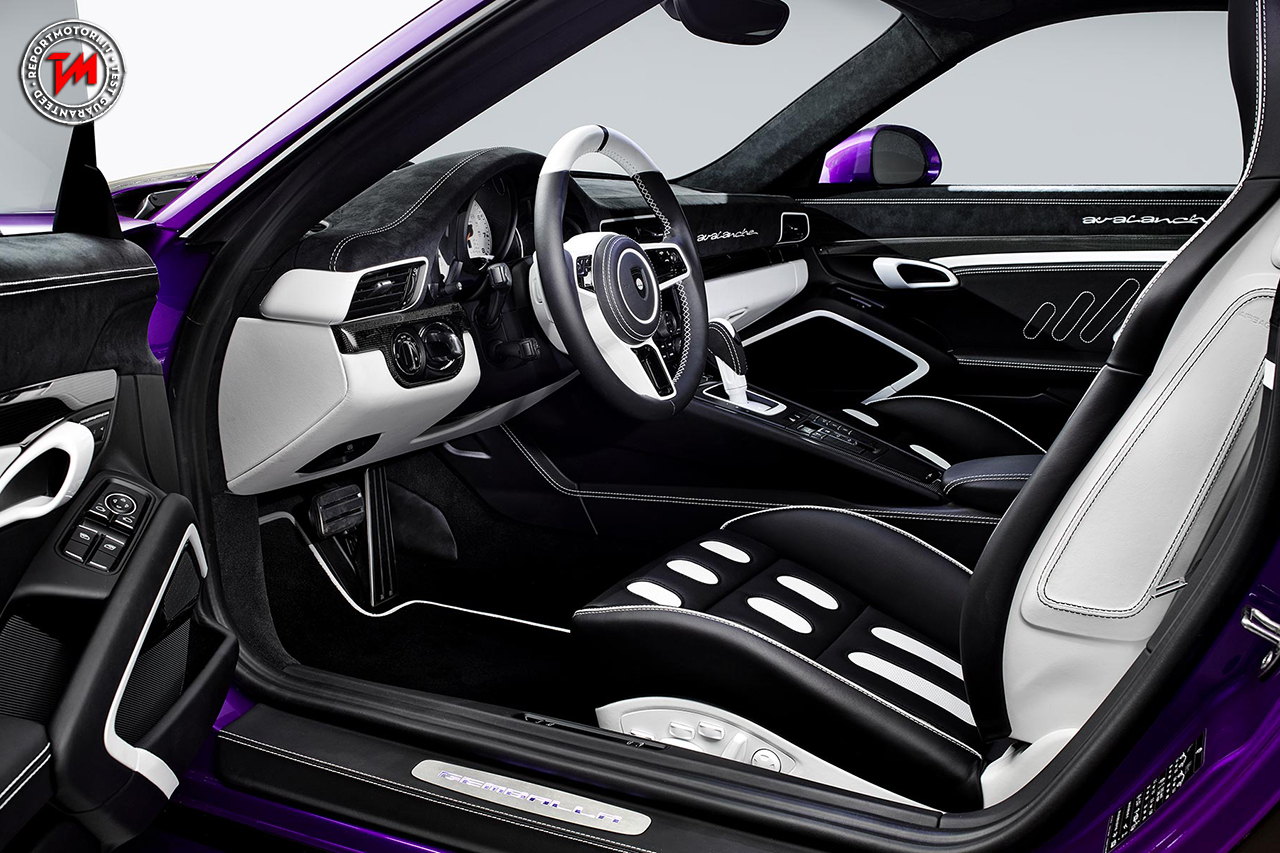La Gemballa 991 Turbo monta un assetto regolabile e cerchi da 21 pollici cui calzano pneumatici 255/30 ZE21 all’anteriore e 325/25 ZR21 al posteriore.