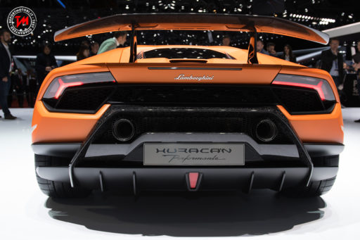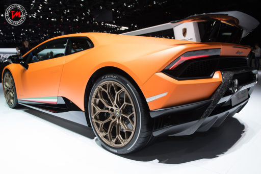 Gli scarichi alti, simili a quelli delle moto sportive più estreme, che creano una connessione fisica più diretta con il motore, sono un esempio della sportività del design della Performante. Il diffusore posteriore in nero opaco riprende quello delle Lamborghini Super Trofeo da gara, sia nell’aspetto sia nella funzione. Una linea trapezoidale si snoda dalla parte inferiore del diffusore, anche questo in Forged Composite, per enfatizzare la larghezza della parte posteriore della vettura: tecnica e sportiva con una presenza imponente.