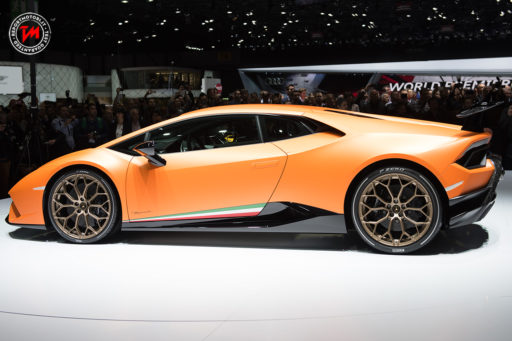 Per quanto riguarda la fiancata, il design è caratterizzato dalla linea scattante del copribrancardo, dalle prese d’aria in nero opaco, dai colori del tricolore sulle porte che richiamano le origini di questa vettura nata a Sant’Agata Bolognese, e dagli specchietti retrovisori in nero lucido. I cerchi forgiati Narvi da 20” sono estremamente leggeri e, nella loro versione dedicata alla Huracán Performante, sono verniciati in bronzo.