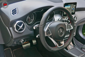 In Mercedes si è lavorato molto sull’efficienza aerodinamica della nuova GLA : gli alloggiamenti per gli specchi retrovisori sono stati rivisti, al posteriore troviamo un rivestimento supplementare nella parte centrale a ridosso dei terminali di scarico.