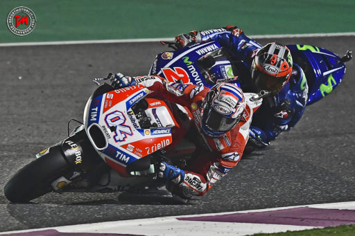 Andrea Dovizioso (Ducati Team) ha terminato in GP del Qatar in seconda posizione a meno di cinque decimi dal vincitore Vinales, con cui ha lottato per tutta la seconda parte della gara. Quello di oggi è il terzo secondo posto consecutivo dal 2015 per il pilota italiano. La gara è partita con cerca 45 minuti di ritardo a causa delle condizioni meteo, ed è stata ridotta da 22 a 20 giri.