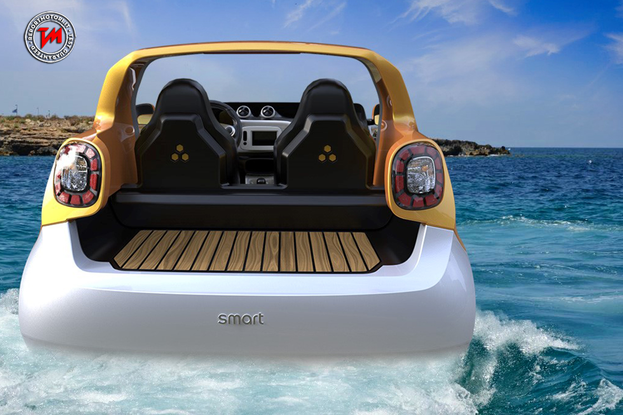 Una nuova concept car che realizza il sogno di viaggiare senza confini, anche quando l’asfalto finisce. Il varo di smart forsea è previsto la prossima estate in Italia, il Paese che ha maggiormente contribuito al successo di smart nel mondo, con la traversata inaugurale dello Stretto di Sicilia. smart forsea dà seguito alla lunga storia di ‘water car’ iniziata ai primi del 1900 e proseguita negli anni successivi, principalmente per impieghi militari. Il progetto forsea ha coinvolto Focaccia Group di Cervia, eccellenza del made in Italy già protagonista nell’allestimento della forfood, il primo ristorante stellato a quattro ruote.