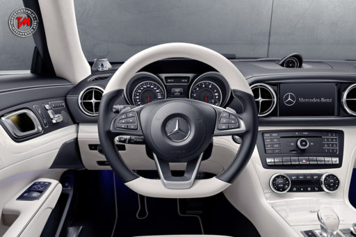 Gli esclusivi elementi di design ed i materiali di pregio scelti per gli interni evidenziano lo straordinario carattere di SL designo Edition . I sedili ed i pannelli centrali delle porte in pelle nappa designo color porcellana/nero con esclusiva grafica designo, il padiglione interno in designo DINAMICA porcellana e le cinture designo bianche creano un ambiente particolarmente elegante. Per non parlare poi di dotazioni quali luci soffuse interne ‘ambient’, volante multifunzione sportivo bicolore a tre razze in pelle nappa color nero/porcellana, leva selettrice DIRECT SELECT in pelle porcellana, inserto designo pianoforte bianco champagne e tappetini con targhetta e bordino designo color porcellana, che si abbinano alla perfezione al resto degli interni.