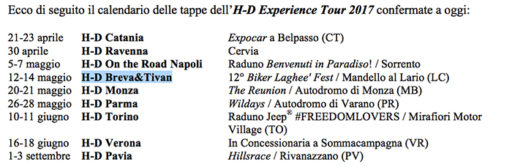 Ecco di seguito il calendario delle tappe dell’ H-D Experience Tour 2017 confermate a oggi: