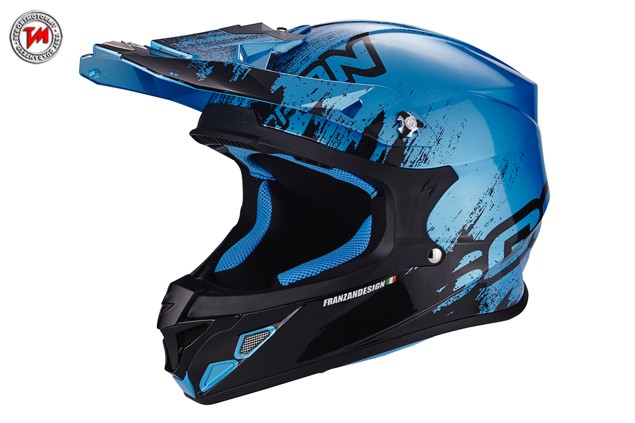 La calotta realizzata in TCT è estremamente leggera. Il look ha linee forti e decise grazie anche alla mentoniera dotata del filtro di ventilazione removibile (senza alcun attrezzo), un altro dei tanti brevetti Scorpion Sports.