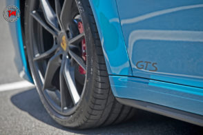 Cerchi da 20 con pneumatici anteriore da 245/35 ZR20 (9 pollici) posteriori da 305/30 ZR20 (12 pollici), assetto ribassato con PASM (20 millimetri Coupé, 10 millimetri Targa e Cabrio), dischi freni maggiorati da 350 millimetri all’anteriore, pinze in alluminio a sei pistoncini in alluminio, per una potenza frenante importante ed una resistenza alla fatica imbattibile.