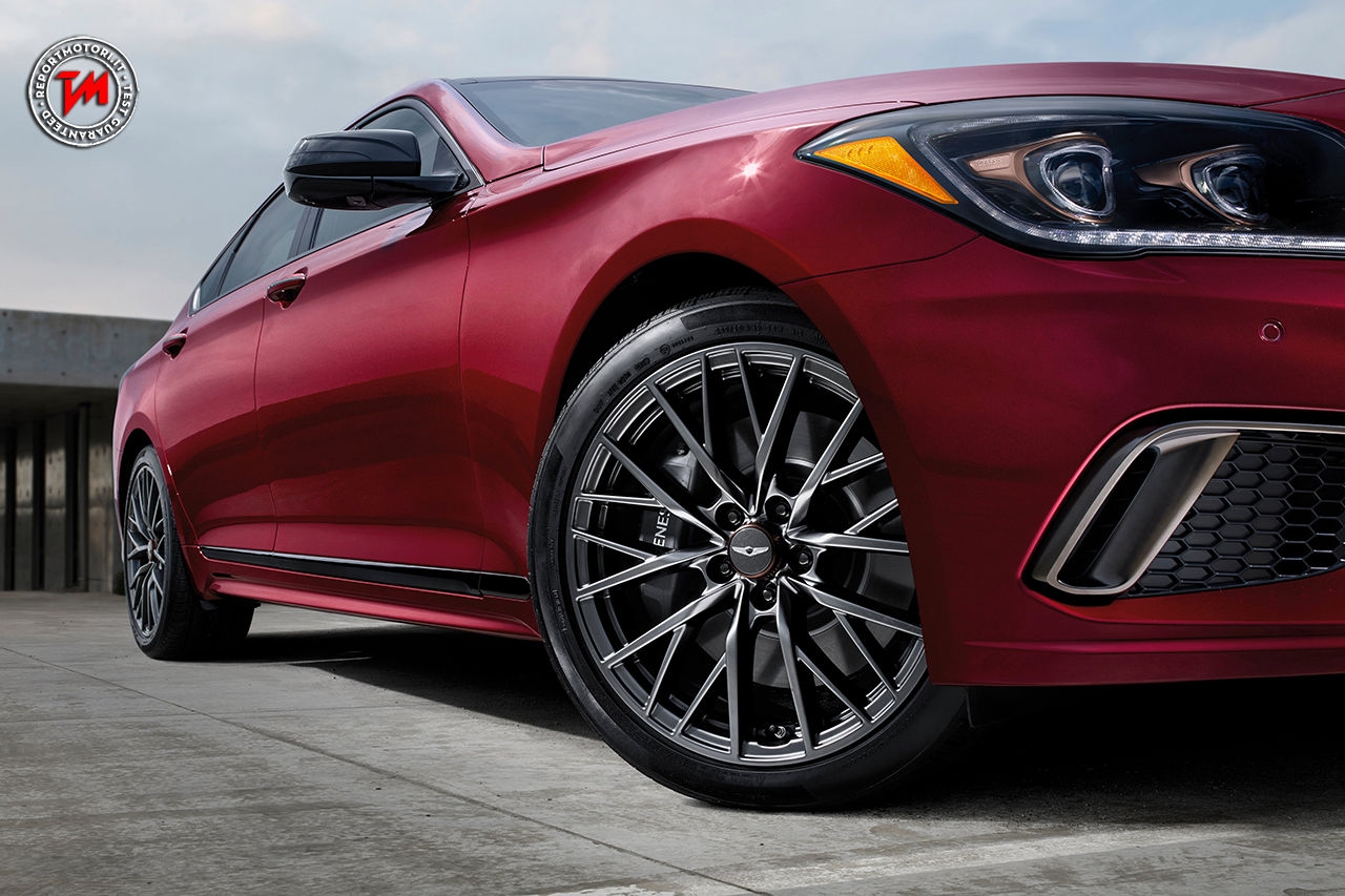Cerchi anteriori da 245/40 R19 e posteriori da 275/35 R19 contribuiscono a dare alla Genesis G80 Sport, una tenuta di altissimo livello.