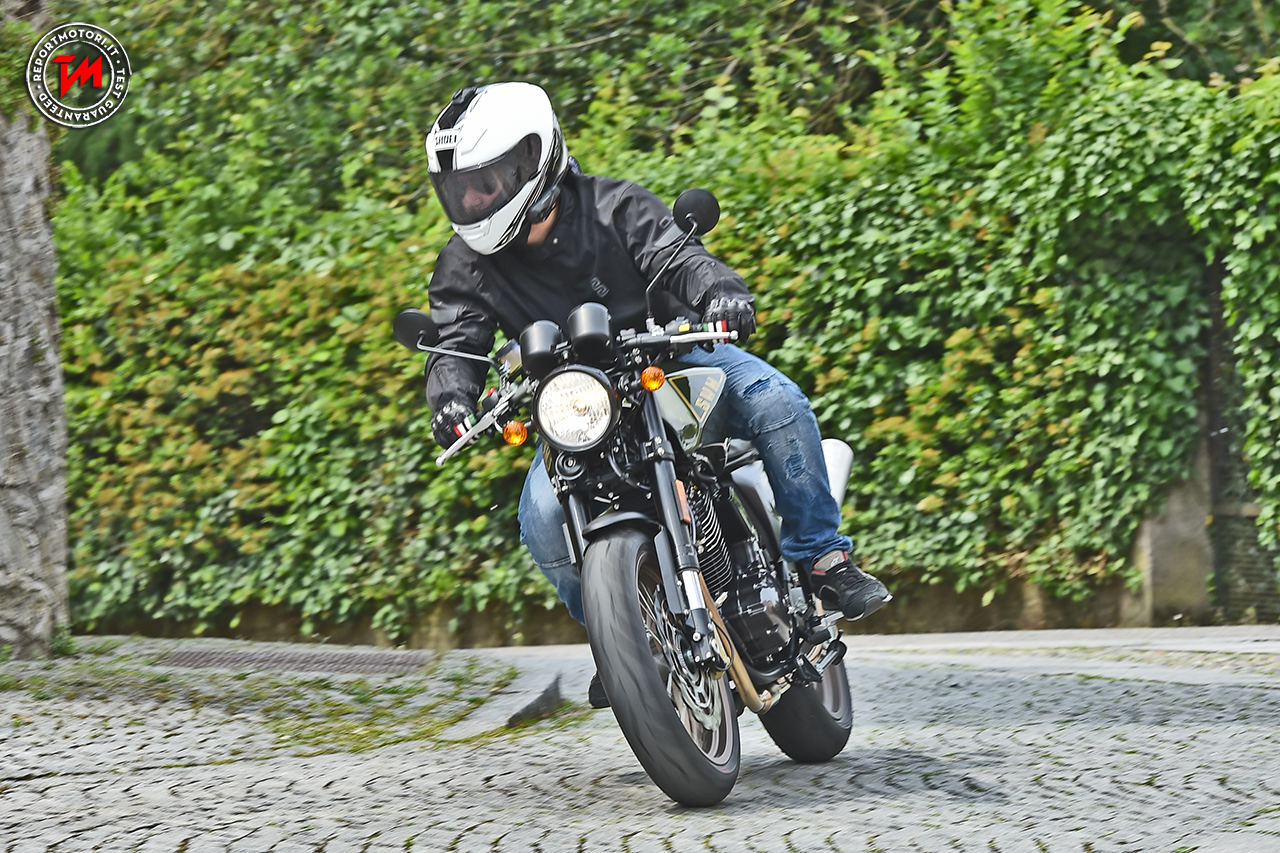 Nettamente migliore è stata la risposta della Gran Milano, che guadagna una forcella completamente regolabile e soprattutto un impianto frenante con pinza Brembo, che va’ a riparare l’unico vero difetto di queste moto: la frenata è poco potente nei modelli GT e SV, mentre nella GM il monodisco compie il suo dovere in modo decisamente migliore, senza far rimpiangere l’assenza di un secondo elemento frenante. Da segnalare anche che alcuni modelli hanno avuto qualche problema con la strumentazione, cosa che ci hanno assicurato i tecnici è limitata agli esemplari un po’ acerbi utilizzati nella presentazione. Piccoli problemi di gioventù che sono già in via di risoluzione.