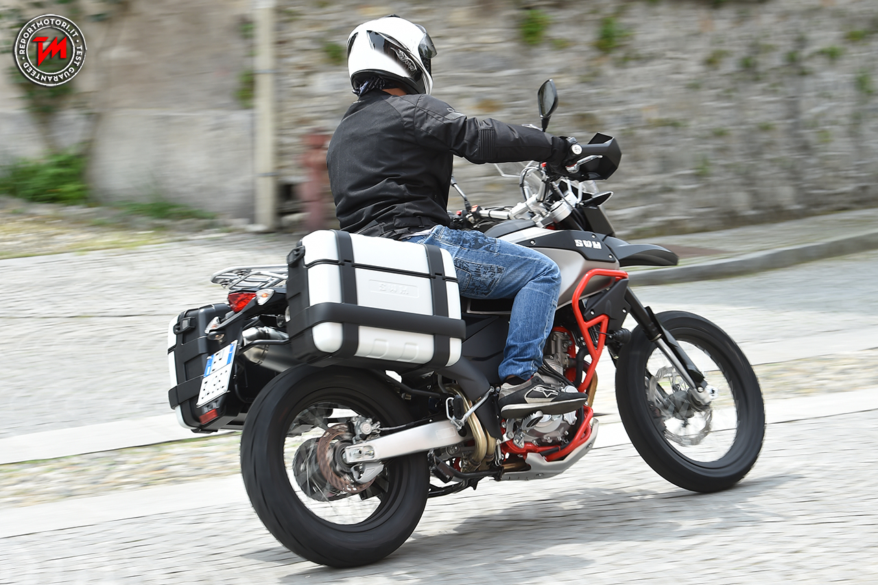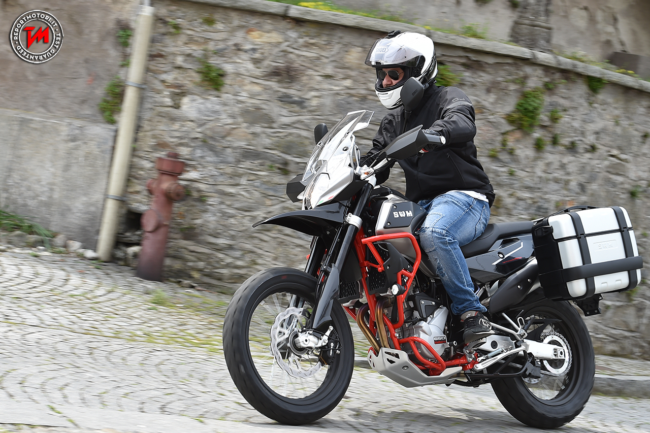 Nella gamma stradale si può comodamente definire la SuperDual l’ammiraglia della produzione, e il perché è chiaro sin dai primi metri: il monocilindrico 600 è sicuramente un’ottima unità, potente e divertente il giusto anche se un po’ più nervosa ai regimi più bassi, dove la frizione svolge un ruolo fondamentale nel tenere a bada le piccole irregolarità derivanti dall’apertura del gas nelle ripartenze più lente. Per il resto il telaio resta ottimo e il peso, di soli 169 kg a secco, rende la SD una splendida Enduro stradale che ha come sua unica pecca una seduta e un baricentro abbastanza alti: sotto l’1’75 è difficile toccare terra con entrambi i piedi e la moto nei cambi di direzione più “allegri” tende ad essere un po’ nervosa sul posteriore, complice anche la presenza del cerchio da 21” all’anteriore, chiaro richiamo alla tradizione offroad. Per il resto la SuperDual si è dimostrata un ottima compagna di viaggio, con poche vibrazioni e un cambio preciso, oltre ad un impianto frenante con disco a margherita di buona fattura, modulabile e con potenza perfetta per la tipologia di moto.
