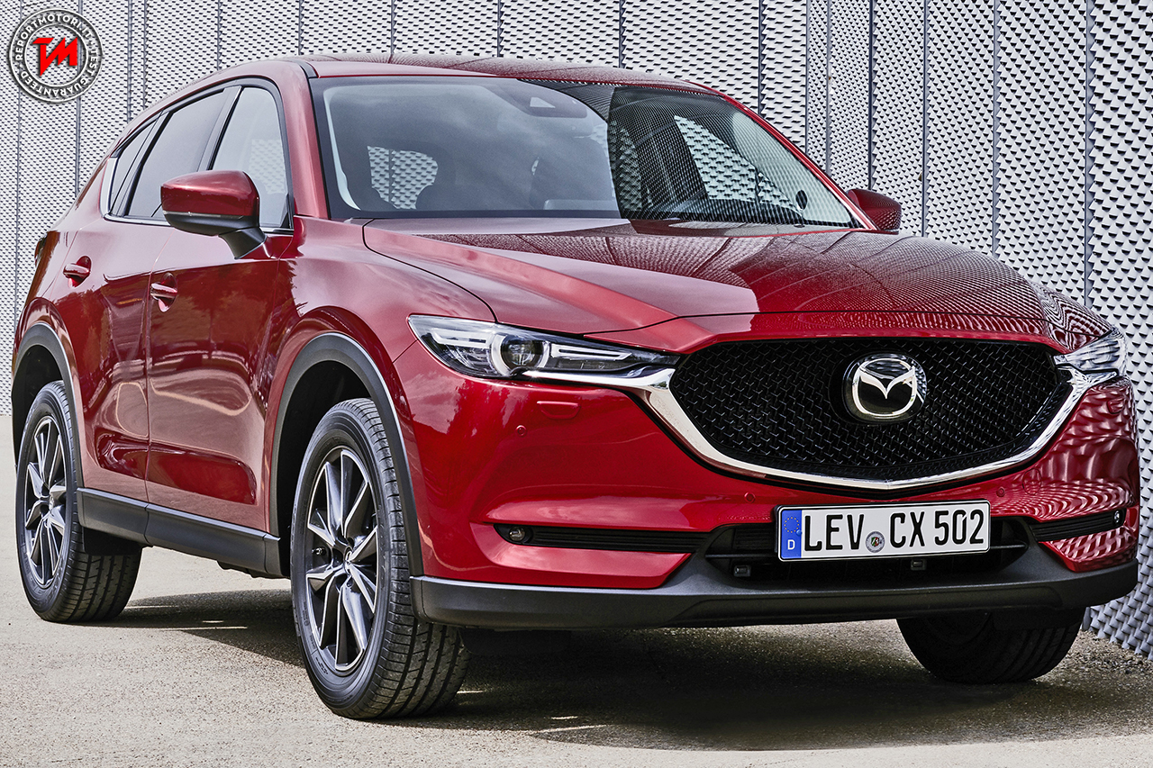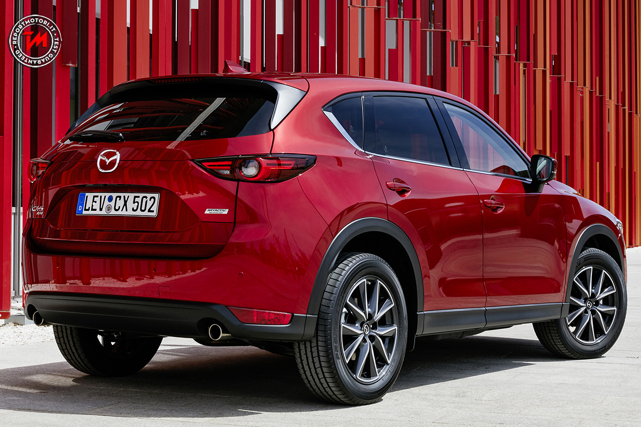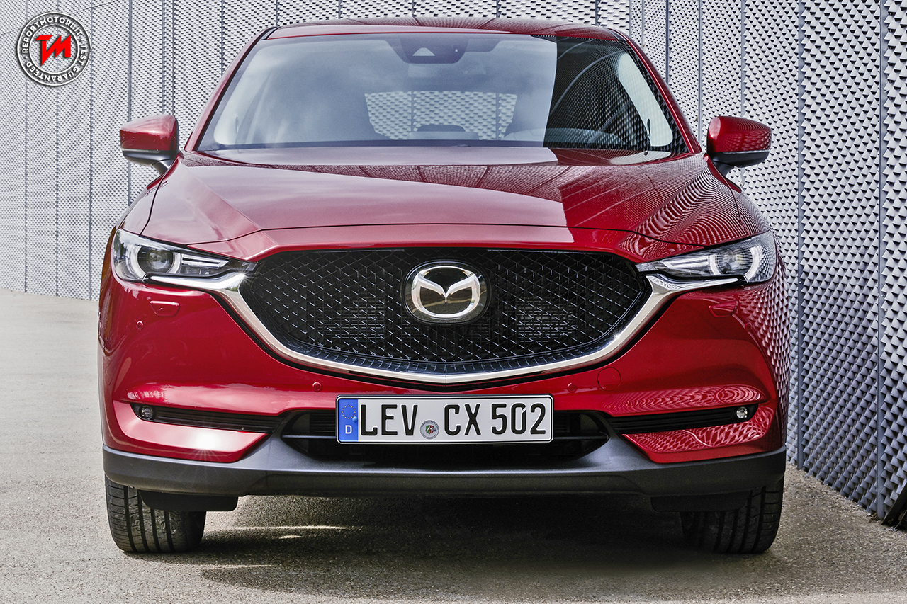 Il nuovo volto della CX-5 viene modernizzato, elementi rotondi, cromatici, si intersecano tra loro dando al tutto una fisicità facilmente riconoscibile.