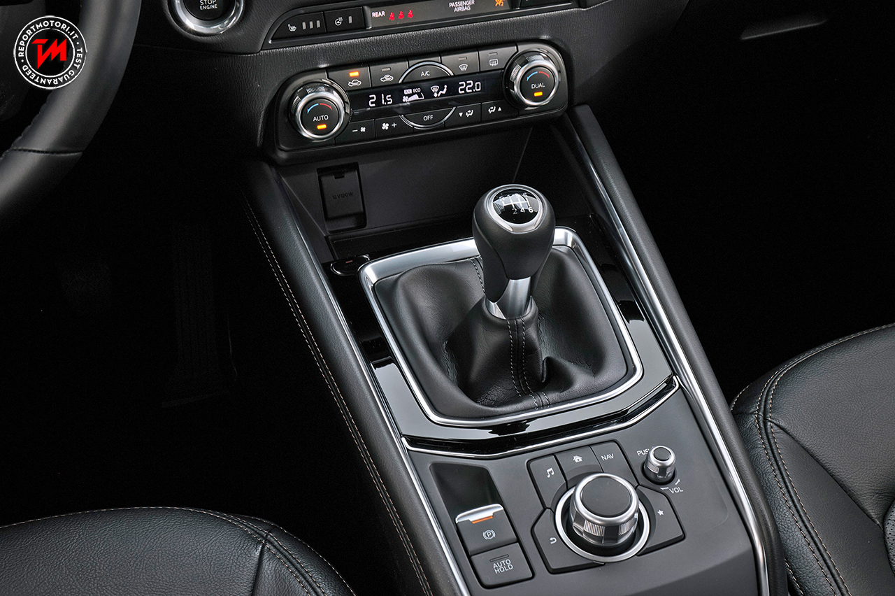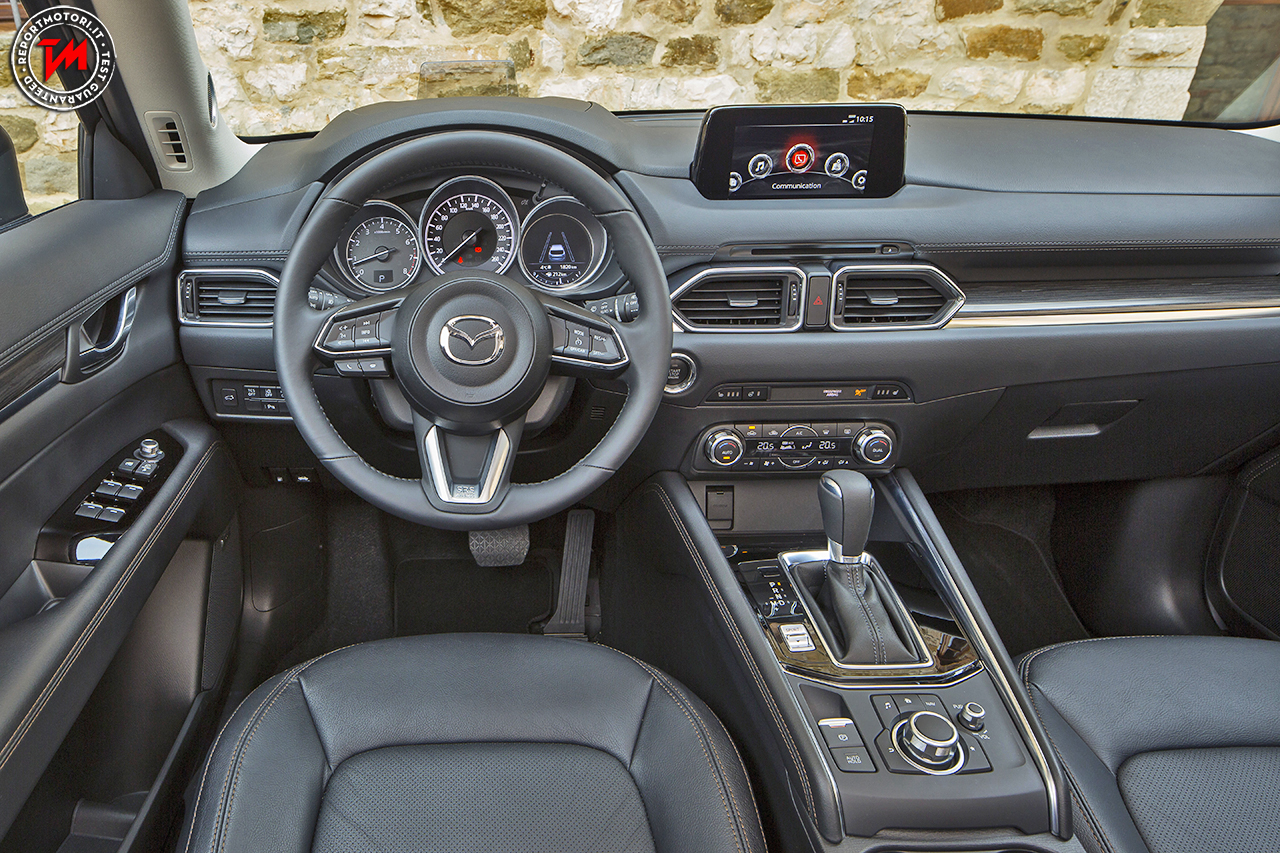 Il layout orizzontale è totalmente nuovo, il guidatore ha il controllo del veicolo e tutti gli elementi principali sono perfettamente in linea con il guidatore: nella nuova Mazda CX-5 c’è una perfetta simmetria tra volante, prese d’aria ed interruttori principali.