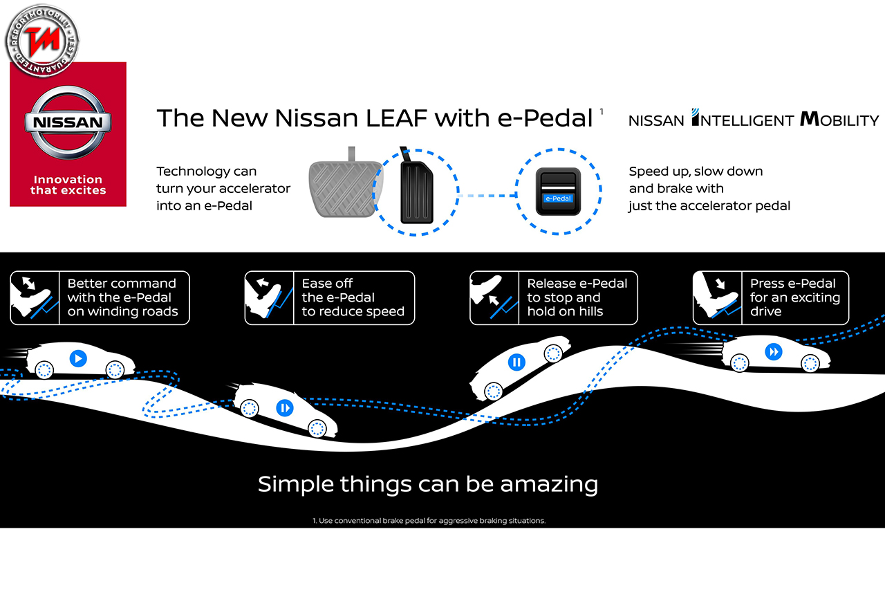 Per la prima volta al mondo questa tecnologia consente di guidare l’auto utilizzando un solo pedale, infatti il sistema e-Pedal , quando attivato, trasforma l’acceleratore in un pedale elettronico che consente di accelerare, rallentare e frenare il veicolo.
