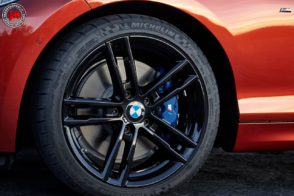 In linea di principio, i due modelli BMW M Performance sono equipaggiati con pneumatici differenziati high-performance: anteriori dalla misura 225/40, posteriori 245/35. Gli pneumatici non provvedono solo al look sportivo, ma soprattutto alla trasmissione ottimale sulla strada delle coppie di accelerazione e frenata. Sia la BMW M240i Coupé che la BMW M240i Cabrio devono il loro carattere incomparabile alla taratura della potenza motore, dell’assetto sportivo M e dell’impianto frenante sportivo M, eseguita con la tipica precisione M nonché all’equilibrio aerodinamico. Nella BMW M240i la straordinaria agilità di guida è anche il risultato dello sterzo variabile sportivo. Lo sterzo variabile sportivo agisce elettromeccanicamente, adattando l’angolo di sterzo delle ruote anteriori alle condizioni del fondo stradale. Questo facilita le manovre velocissime, per esempio quando si tratta di evitare un ostacolo, mentre in autostrada lo sterzo assicura un’elevata fedeltà di traiettoria e una guida stabile in rettilineo.