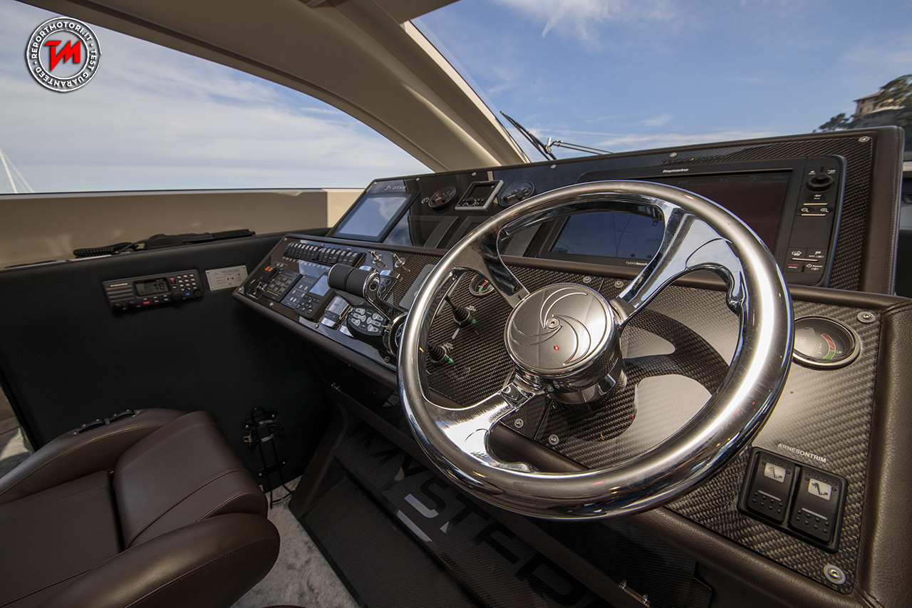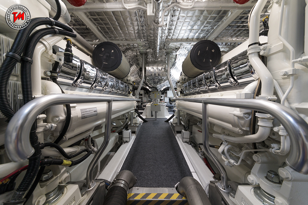 Il nuovo OTAM Millennium 80 HT M/Y MYSTERE monta una doppia motorizzazione MTU M94 2600 Hp a 2450 RPM e trasmissioni Arneson drive15 A 1 L, che si sono dimostrati capaci di spingere la barca oltre i 48 nodi nelle prove in mare.