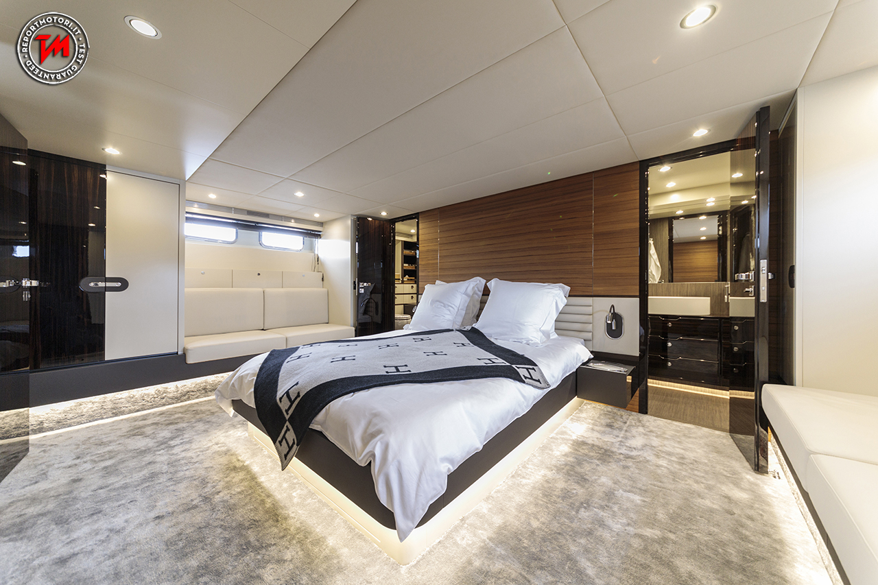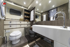A riprova dell’artigianalità propria del vero made in Italy, il cantiere ha inoltre posto una grande attenzione all’insonorizzazione, realizzando una doppia coibentazione nella sala macchine e nelle due suite armatoriali. Ottimi i risultati ottenuti: solo 44 db nella cabina armatoriale e nel Main Deck Salon con generatore in funzione e aria condizionata all’80% di carico.