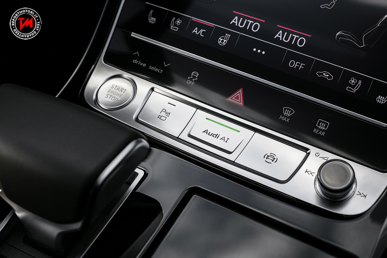 Se esistono questi presupposti, una serie di avvertimenti ottici segnala al conducente che il sistema è disponibile: il tasto Audi AI sulla consolle del tunnel centrale si illumina di bianco, sull’Audi virtual cockpit viene visualizzata una scritta informativa, mentre sui margini sinistro e destro appare una linea luminosa bianca lampeggiante. Anche il simbolo AI nella strumentazione digitale si illumina di bianco.