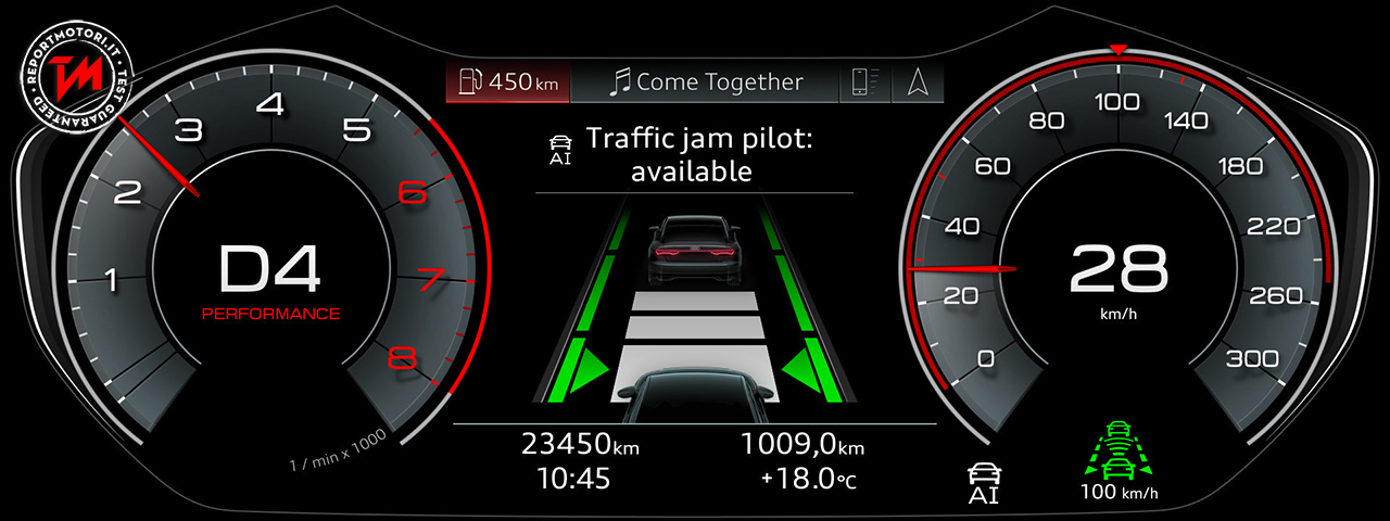 Il sistema Audi AI traffic jam pilot gestisce partenze, accelerazioni, sterzate e frenate, senza necessità di controllo alcuno da parte di chi guida: in queste determinate situazioni, dunque, può allontanare la mani dal volante e rilassarsi.