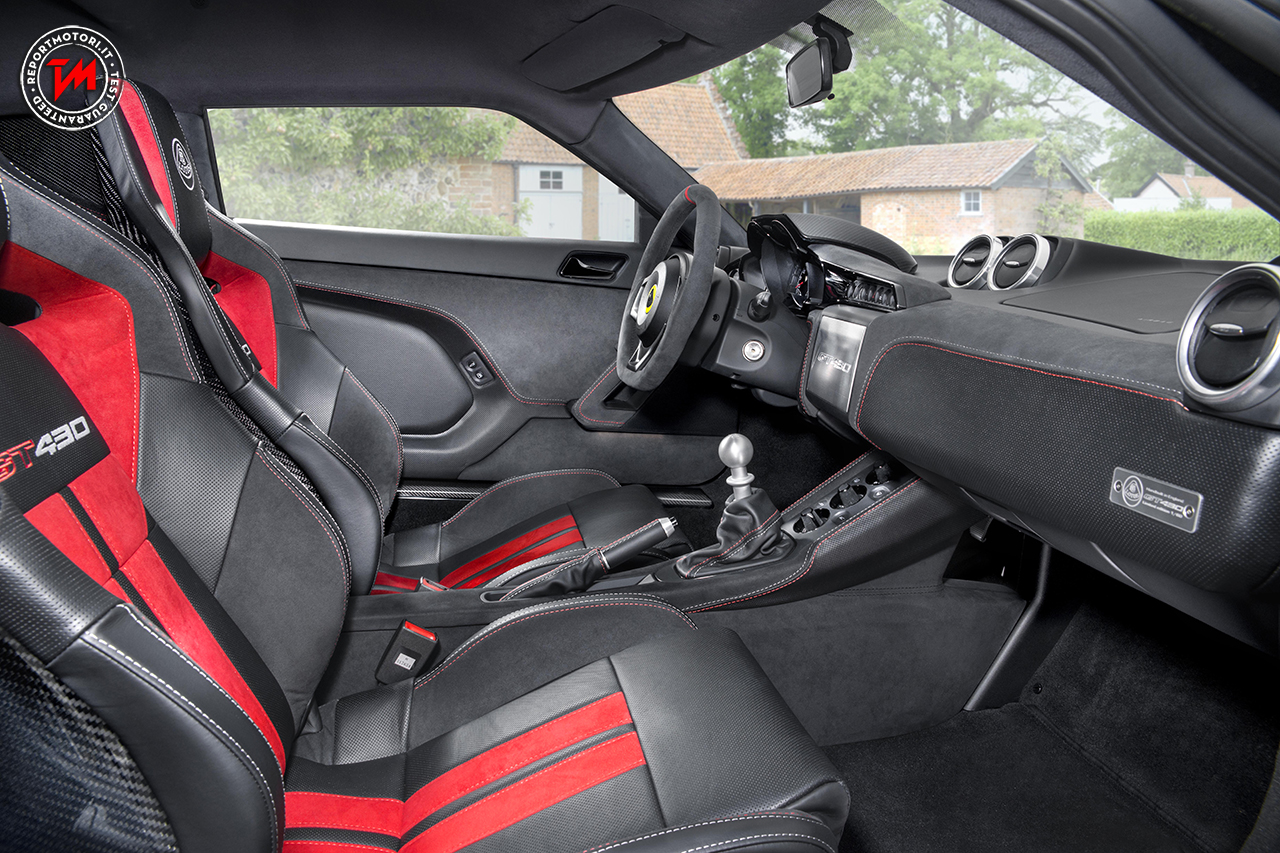 L’ Evora GT430 si differenzia dalla Evora GT430 Sport , grazie alla presenza di un’aerodinamica curata, derivata dai modelli impiegati nelle competizioni: un grosso alettone posteriore, dei profili anteriori in carbonio e minigonne laterali con pneumatici a sezione differenziata, danno risalto a questa versione altamente performante.