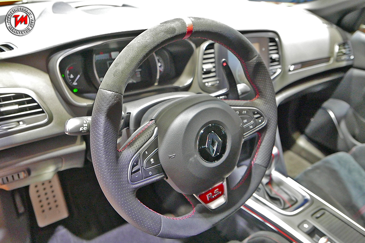 Il design della Renault Megane R.S. integra inoltre elementi provenienti dal mondo delle competizioni: come il diffusore posteriore, la lamina F1 o ancora la griglia della calandra a nido d’ape in 3D reinterpretata da Renault Sport. Di profilo, le fiancate scolpite e sensuali tipiche della gamma Mégane sono accentuate dall’allargamento delle carreggiate e dai parafanghi. Il sistema di illuminazione R.S. Vision e la sua tecnologia esclusiva brevettata da Renault Sport richiamano il mondo della competizione offrendo un’illuminazione particolarmente efficace, senza paragoni nel segmento.
