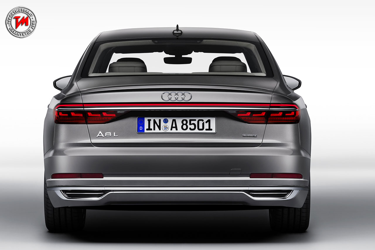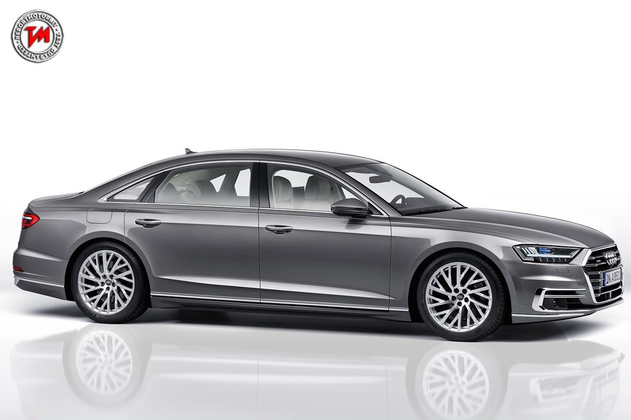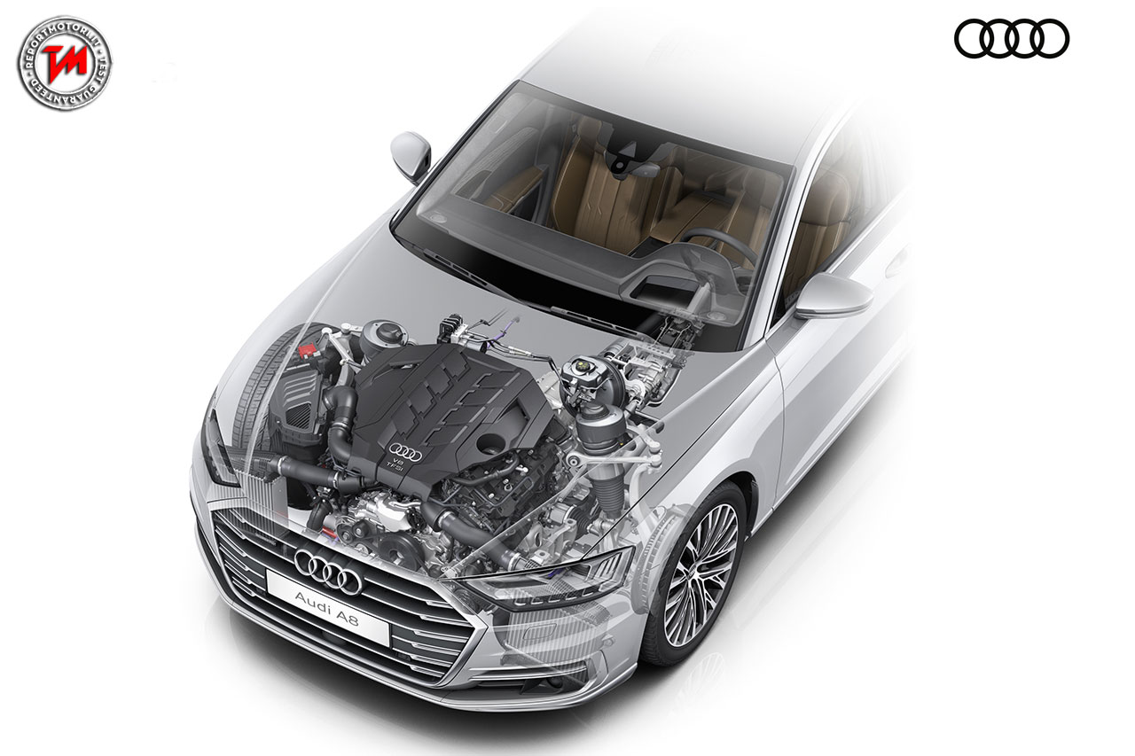 La nuova Audi A8 debutta sul mercato europeo con due motori turbo V6 ulteriormente ottimizzati, il 3.0 TDI su A8 50 TDI (consumi di carburante nel ciclo combinato 5,8 – 5,6 l/100 km; emissioni di CO2 nel ciclo combinato 152 – 145* g/km) e il 3.0 TFSI su A8 55 TFSI (consumi di carburante nel ciclo combinato 7,8 – 7,5 l/100 km; emissioni di CO2 nel ciclo combinato 178 – 17* g/km). Il propulsore Diesel eroga 210 kW (286 CV), il benzina 250 kW (340 CV).