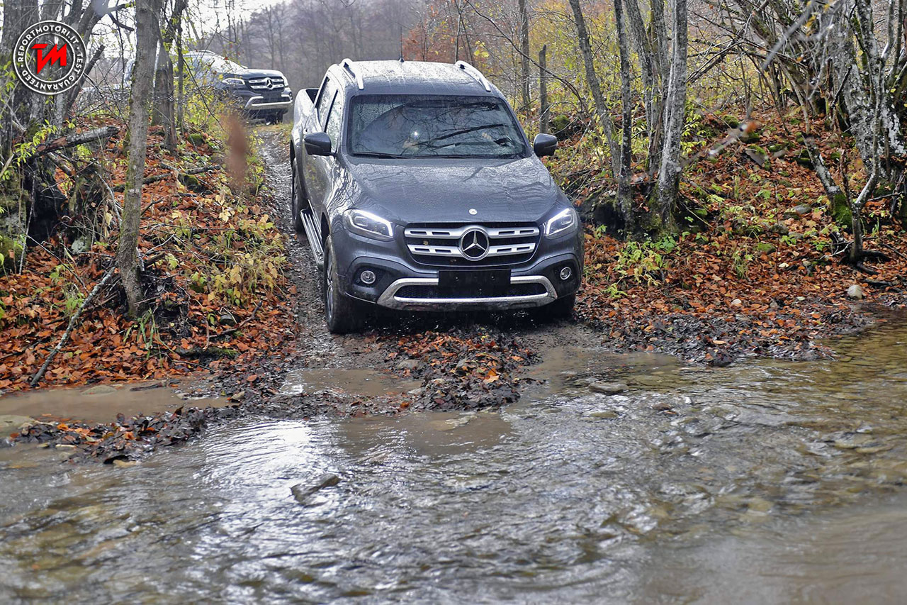 Attraversare un bosco, con guadi e torrenti con un bestione di 5,3 metri e da oltre 2 tonnellate, tra fango, ghiaia, non è da tutti, soprattutto quando la vocazione è pur sempre Mercedes-Benz: Classe X smentisce ogni pregiudizio, portandoci ad attraversare con una disinvoltura sorprendente, tutto ciò!