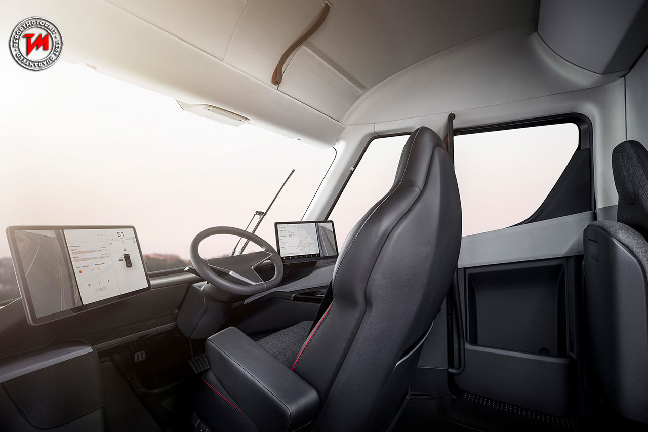 A differenza di altri autocarri, la cabina del Tesla Semi è stata progettata specificamente per avvolgere il guidatore, con una visibilità ottimale.