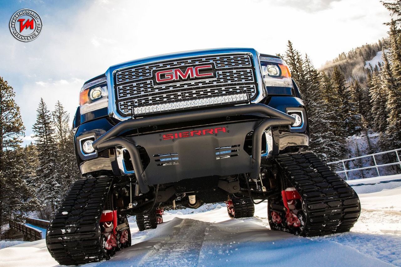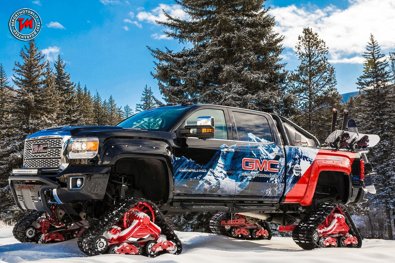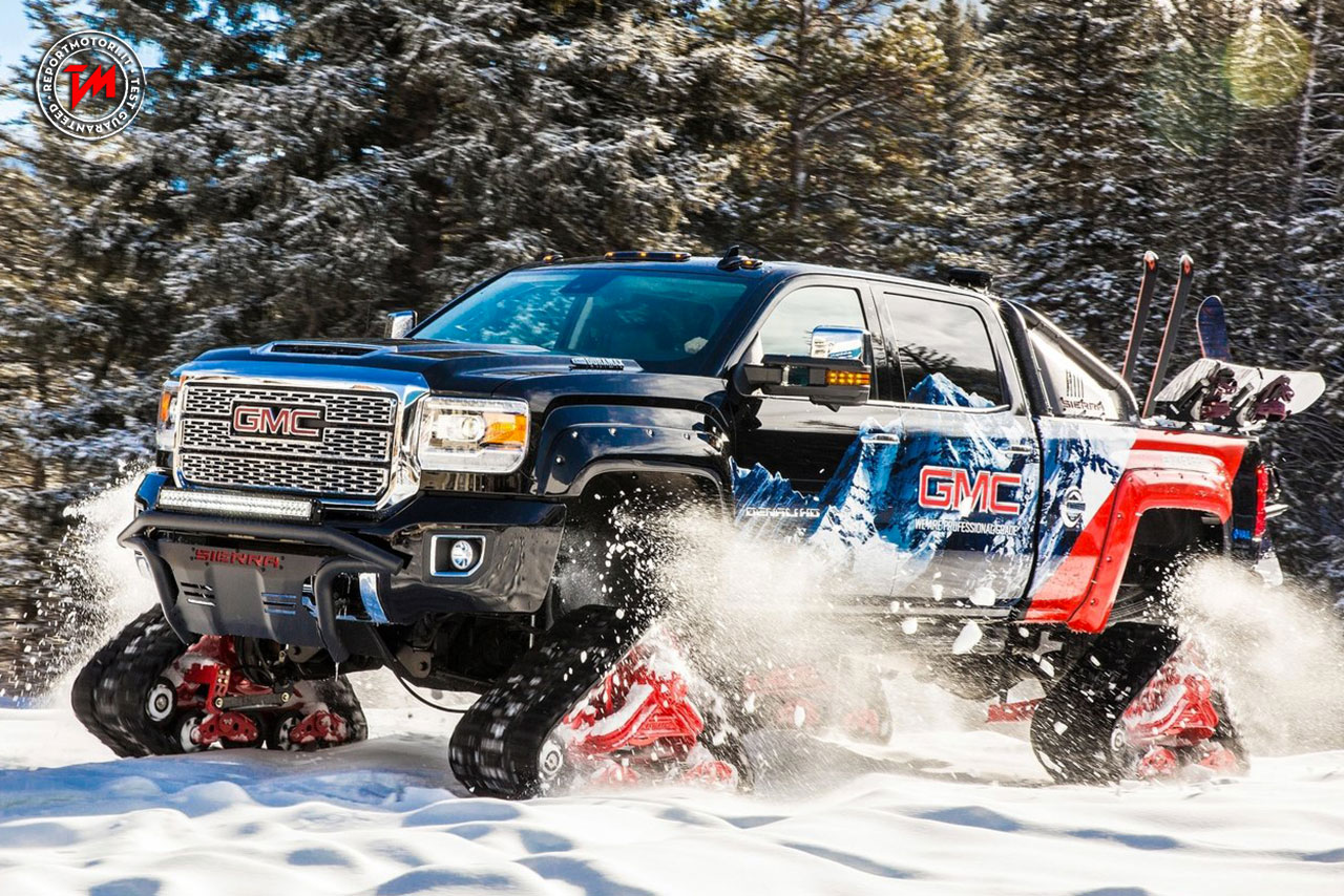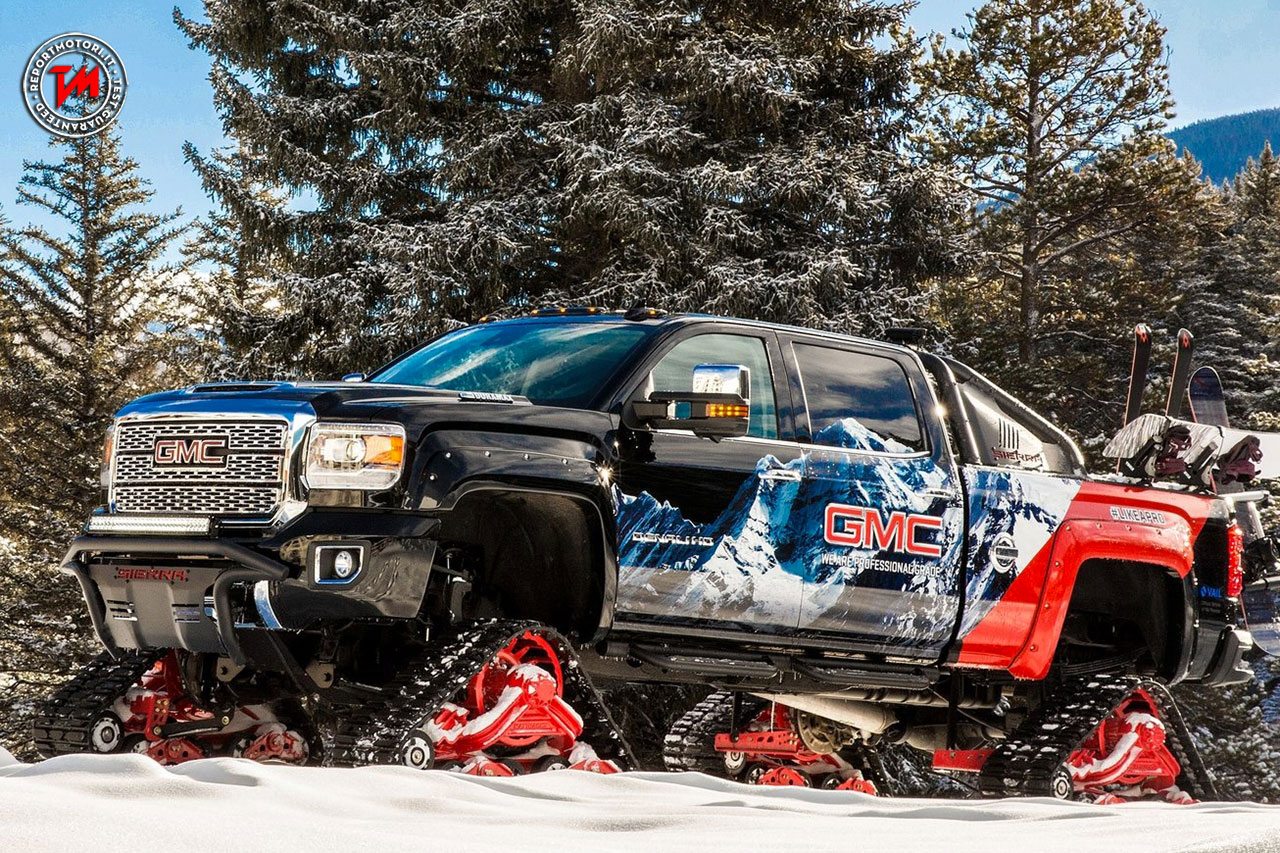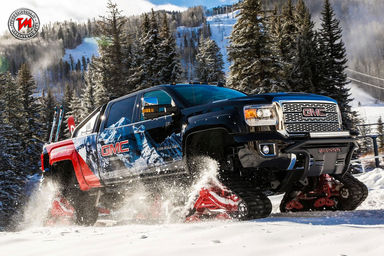 Nasce come mezzo per arrampicarsi sulla neve, su pendii impossibili, il Sierra All Mountain si basa su di una GMC Sierra 2500HD ma totalmente rivisto nella meccanica perché privo di “ruote”.