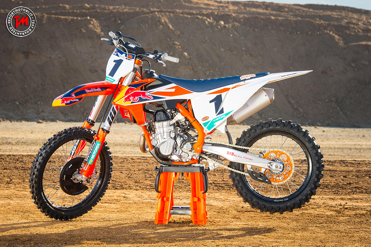 Team ma non solo nella presentazione di Murrieta! E’ stata infatti svelata la nuova KTM 450 SX-F Factory Edition, che a partire da dicembre sarà commercializzata nel solo mercato americano. Come per tutte le Factory Edition, anche la MY18 prevede un ricco elenco di accessori selezionati nel catalogo KTM Power Parts, che la rendono veramente affascinante oltre che più performante. Esteticamente la moto salta all’occhio per le splendide grafiche Red Bull KTM Factory Racing e per il telaio arancione; andando nel dettaglio, la lista degli accessori vede piastre forcella anodizzate arancione, cover frizione factory Hinson, cerchi D.I.D Dirt Star, sella factory con logo Selle Dalla Valle, disco freno anteriore flottante e molto altro. Per rientrare nei termini di omologazione dell’AMA Supercross, la moto presenta tutti gli aggiornamenti tecnici che vedremo tra qualche mese sui modelli KTM SX 2019 destinati a pro rider e amatori di tutto il mondo.