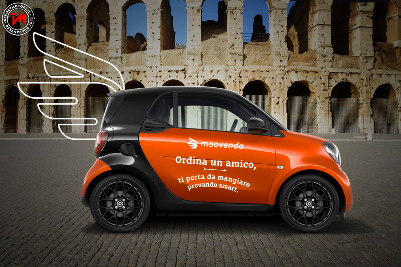 Sono 20 le smart fortwo presenti nella Capitale, a disposizione di Moovenda , un verso e proprio servizio di delivery, che offre al cliente la possibilità di “ordinare” un amico/a con cui sedersi a tavola, direttamente a domicilio, il tutto insieme all’ordinazione scelta.