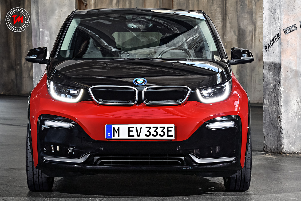 Nella parte anteriore, l’intarsio del paraurti e la circonferenza a forma di U hanno una finitura nera, il classico doppio rene BMW, sulla i3s è chiuso ed è privo di feritoie, di colore nero lucido, dona un aspetto ancora più sportivo ed elegante.