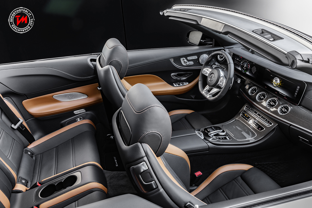 La sintesi tra esclusività e sportività è testimoniata anche dai sedili sportivi (nei modelli E 53 4MATIC+ Coupé e Cabriolet hanno l’aspetto di sedili integrali), che presentano il motivo grafico specifico di AMG , la targhetta AMG, cinture di sicurezza rosse ed elementi decorativi in carbonio o fibra di vetro argento opaco. Completa gli interni il nuovo volante Performance AMG di serie, realizzato in pelle nappa con possibilità di personalizzazione, ad esempio mediante inserti in legno laccato lucido o rivestimenti in microfibra DINAMICA in corrispondenza dell’impugnatura.