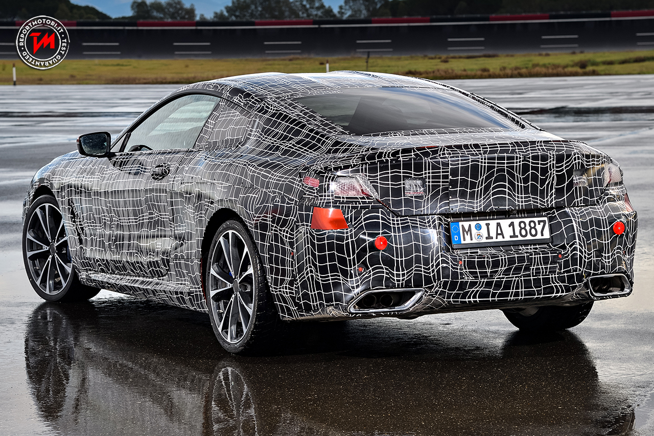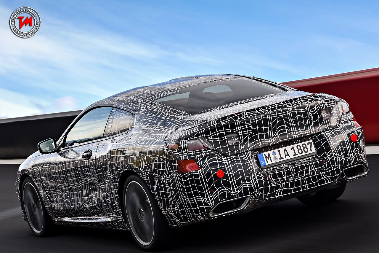 I test drive sono stati eseguiti con un prototipo fortemente mimetizzato, che tuttavia fornisce una forte indicazione delle proporzioni tipiche, delle auto sportive, della nuova BMW Serie 8 Coupé .