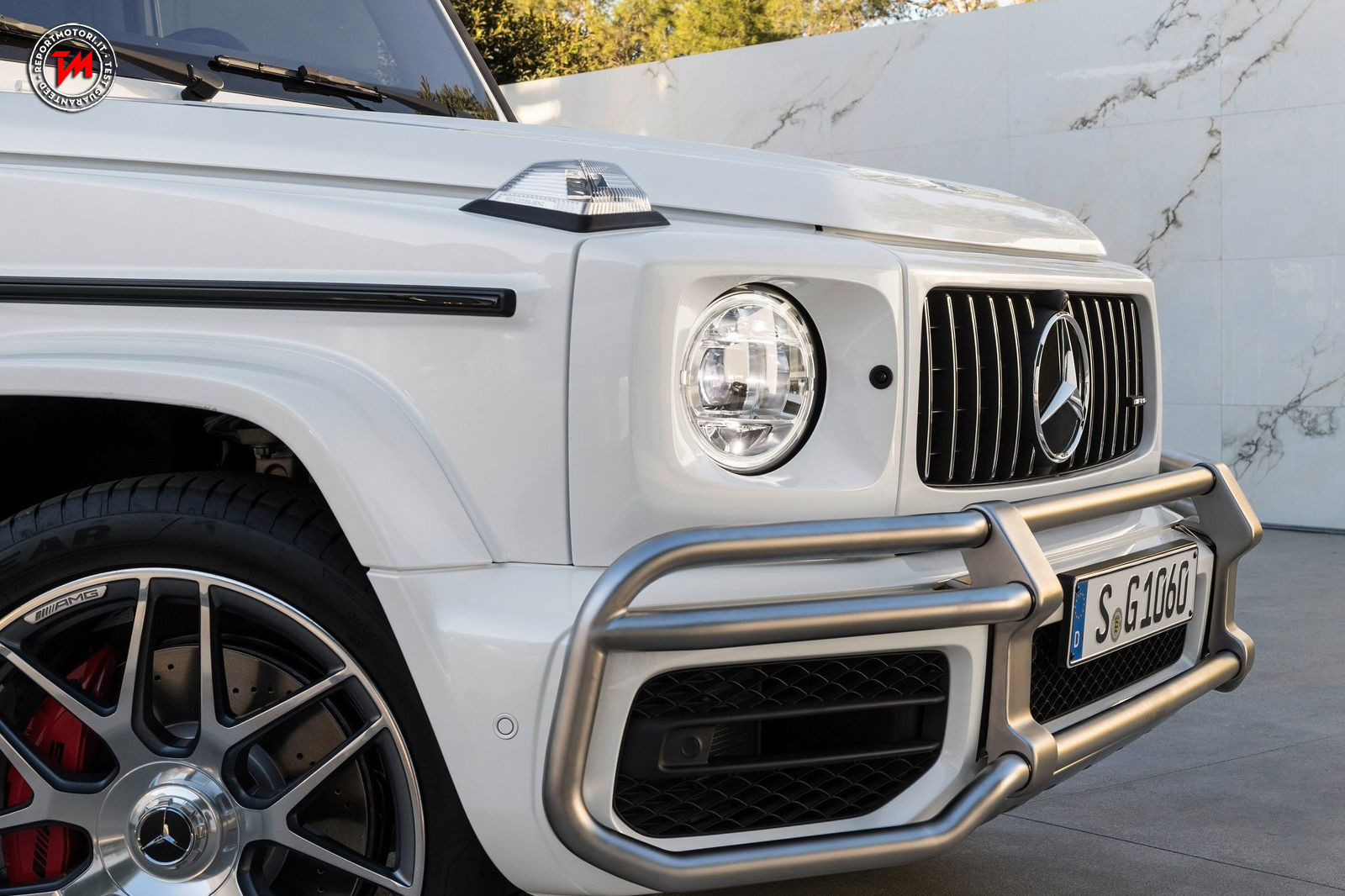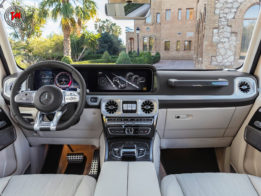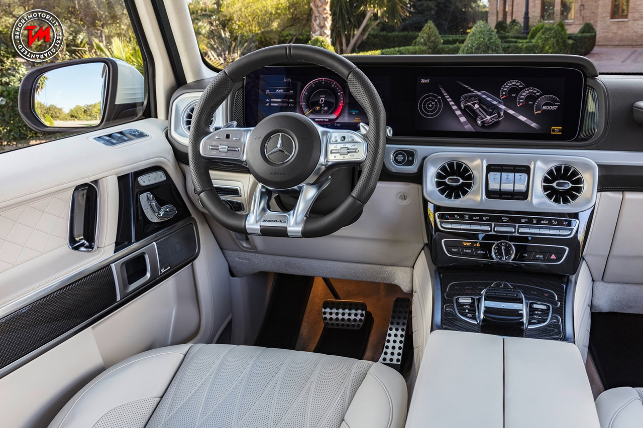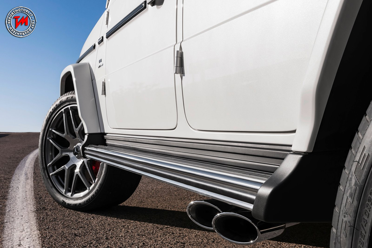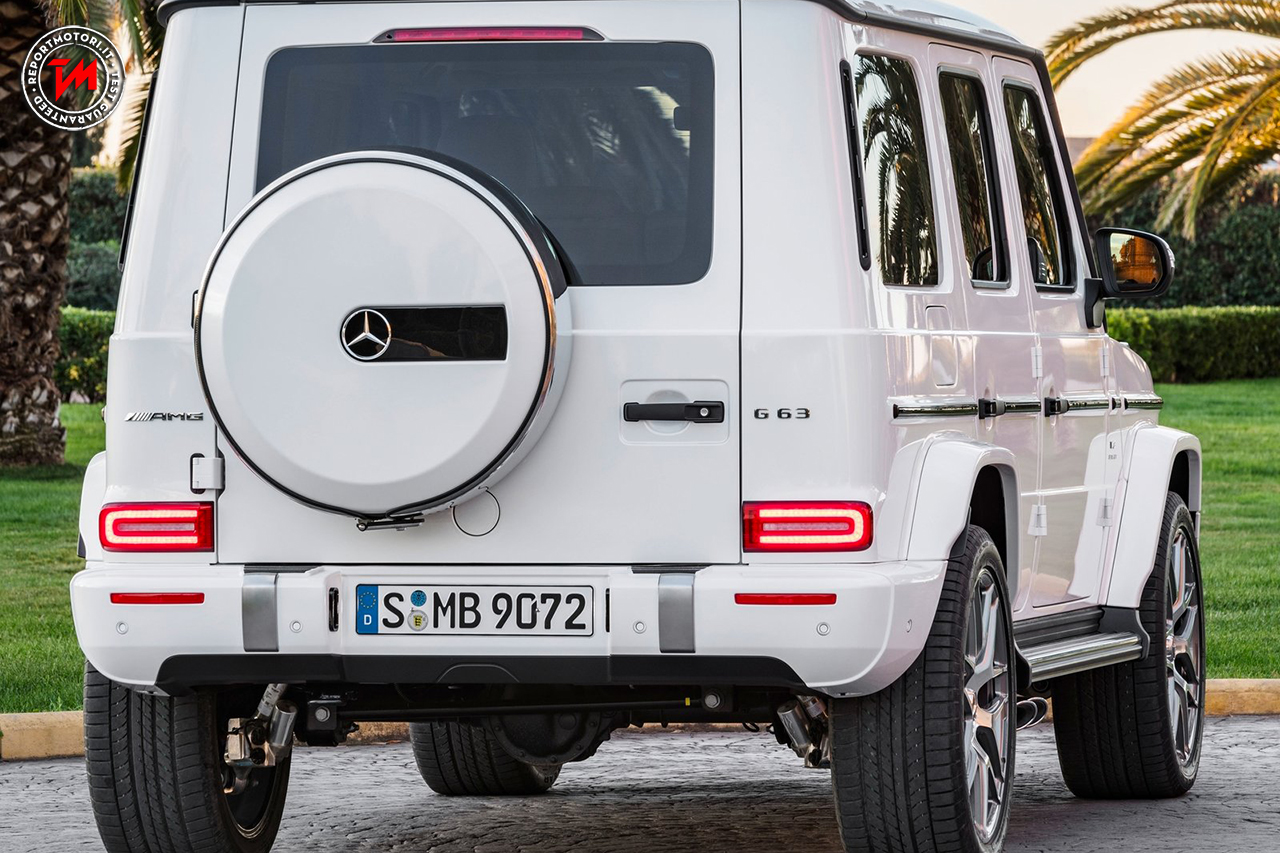 La trazione è integrale, la ripartizione della coppia motrice è 40:60, con tre blocchi differenziali, il cambio automatico è a 9 marce e vanta una rapidità di cambiata esemplare, sospensione anteriore sono indipendenti a doppio braccio oscillante ed a smorzamento adattivo, regolabile. La reinterpretazione del design è inconfondibile, lo stile della nuova Mercedes-AMG G63 è sottolineato dall’aggressiva griglia del radiatore specifica AMG, dai passaruota allargati e dai sorprendenti tubi di scarico, laterali. I cerchi sono da 22 pollici.