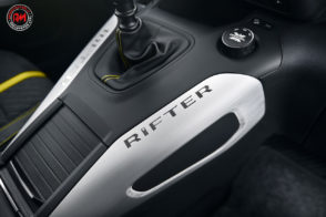 L’abbinamento di colori e materiali prosegue all’interno del veicolo. I sedili specifici con il nome Rifter abbinano un tessuto grigio chiné in rilievo ad inserti in Alcantara nera. Presentano impunture a vista color giallo vivo, che ritroviamo anche sulla leva del cambio. Bordini gialli, in materiale « flex » tipo « neoprene », richiamano i tocchi di colore della carrozzeria.
