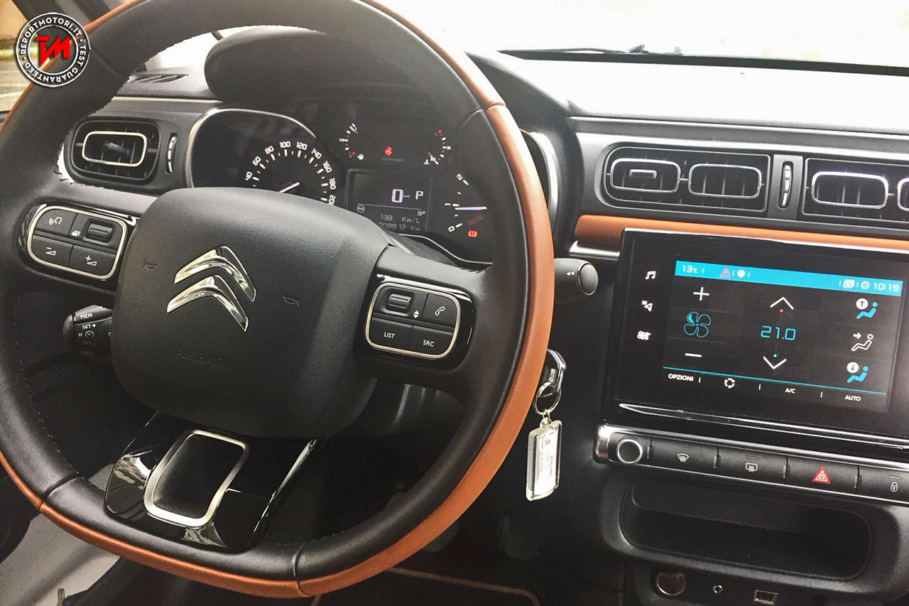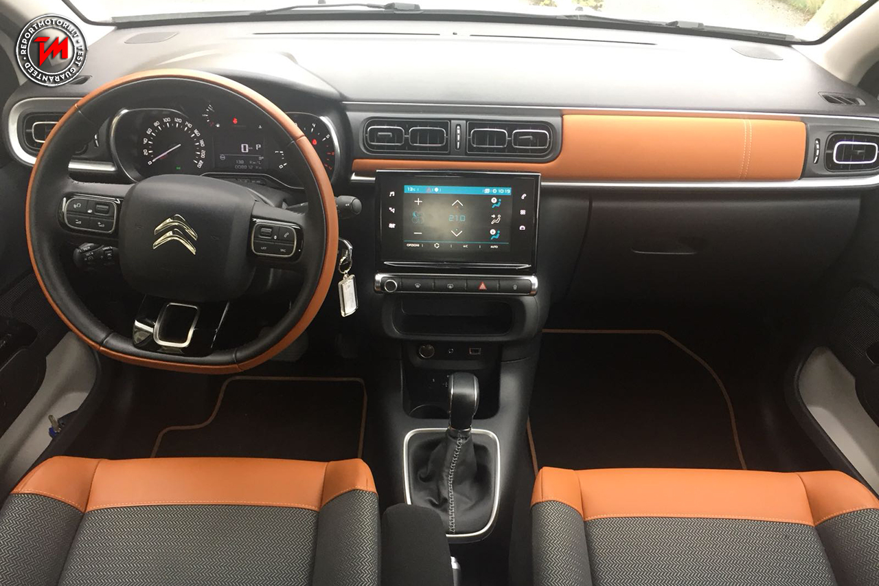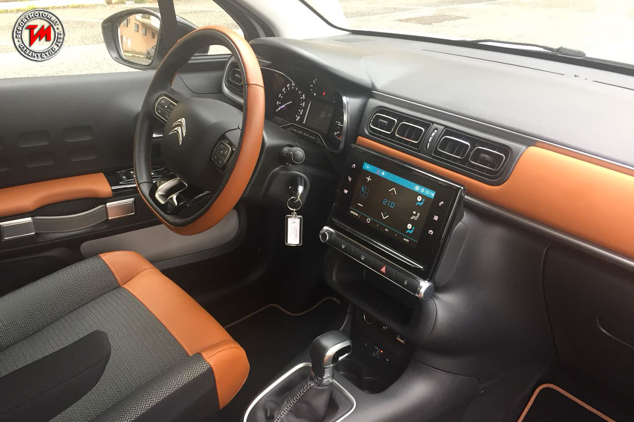 Lunga 4 metri, larga 1,75 e con un’abitabilità perfetta per cinque persone di media statura, la nuova Citroen C3 PureTech 110 S&S EAT6 vanta anche una discreta capacità bagagliaio, pari a 300 litri, che diventano 922, abbattendo gli schienali posteriori. Pratica e comoda, i cerchi da 16 pollici con pneumatici 205/55 contribuiscono ad aumentare la sensazione di sicurezza in fase di appoggio; il rollio è decisamente contenuto, ed il telaio mostra di ben gradire una certa vivacità di guida su percorsi fatti di tornanti e curve strette. Belli gli interni, finiture in pelle avvolgono plancia, corona del volante e battuta dei sedili, attraverso il grosso display centrale da 7 pollici, touch, è possibile gestire ogni parametro vitale della vettura, dal clima, alla radio, al setting del computer di bordo. Il volante, ricco di comandi, inizialmente richiede un pò di apprendistato, ma una volta presa dimestichezza con i numerosi pulsanti, è facile ed immediato gestire audio e cruise control. Completa la dotazione di accessori, con fari fendinebbia, sensori parcheggio, airbump laterali e tergicristalli automatici offerti di serie. Previsto il supporto connettività Apple CarPlay ed Android Auto.