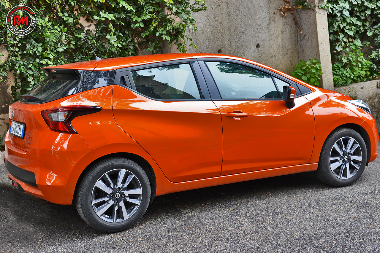 Disponibile unicamente con carrozzeria cinque porte, la nuova Nissan Micra racchiude in sé il nuovo corso stilistico del brand giapponese, geniali le maniglie porte posteriore annegate nella cornice ed i giochi di luce sulle fiancate. Linee tese, muso spiovente, coda tronca, le nuove colorazioni accese, tra cui spicca l’ Energy Orange (presente sulla vettura da noi provata), donano al corpo auto, originalità ma anche futurismo. Strizza l’occhio al pubblico femminile, da sempre amante della generazione Micra, ma visto il suo aspetto ed i contenuti, sicuramente questa quinta generazione, sarà apprezzatissima anche dal pubblico maschile e giovane.