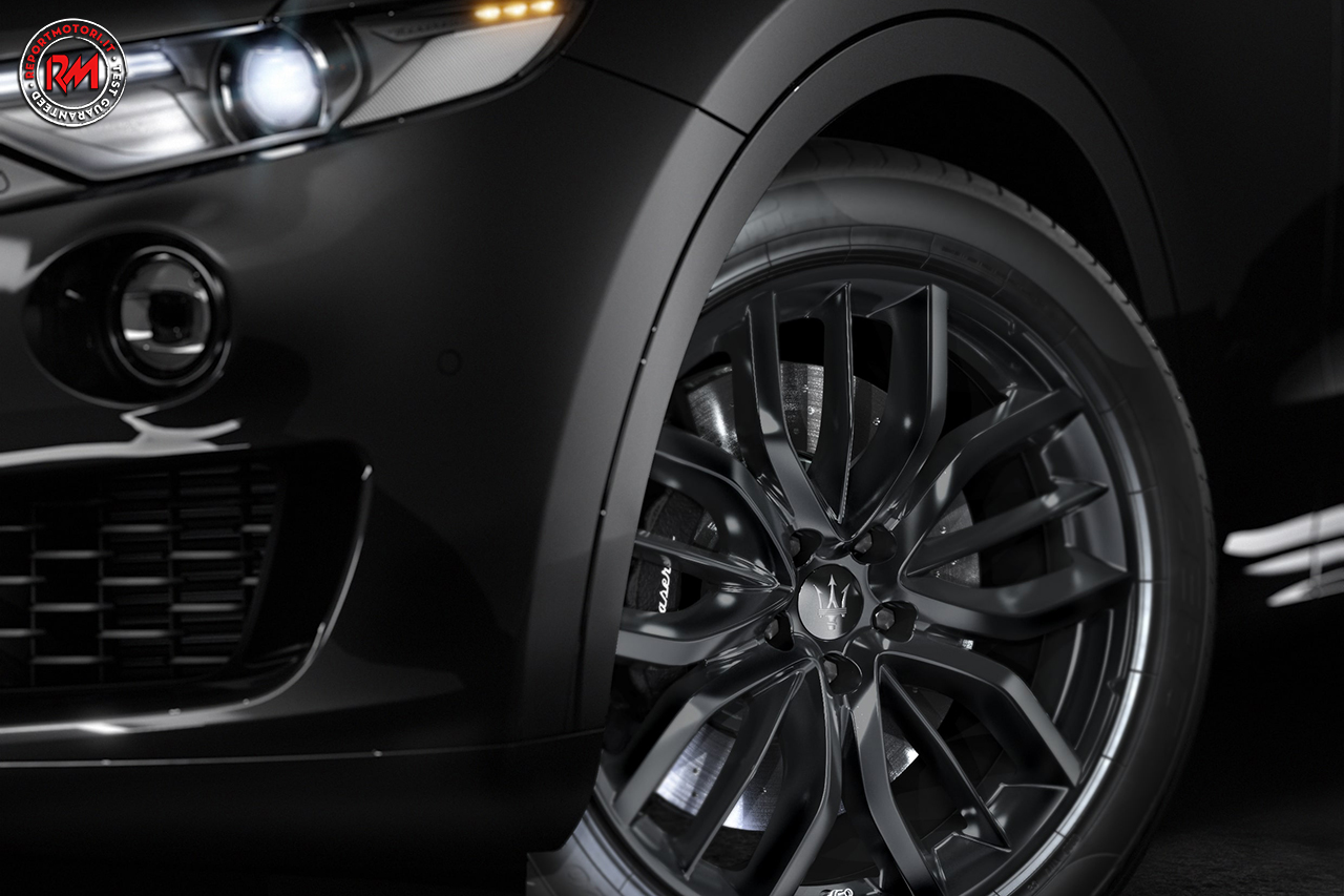 Per Levante sono presenti contenuti aggiuntivi come: le protezioni sottoscocca anteriore e posteriore e la cornice dei fendinebbia anteriori neri. La scelta tra i cerchi comprende quelli da 20” Nereo o Efesto o da 21” Anteo, tutti con finiture scure.