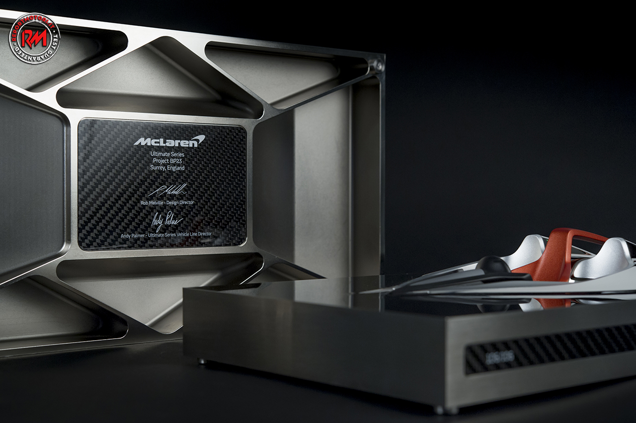 Ognuna della McLaren BP23 “Speed Form” ha richiesto più di 100 ore di lavoro per essere creata, con 30 ore dedicate solamente alla lucidatura a mano altamente specializzata. Ogni scultura è stata controllata da un artigiano per garantire un livello di produzione ed una qualità impareggiabile.