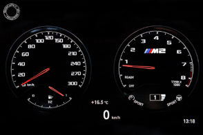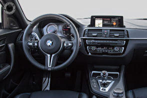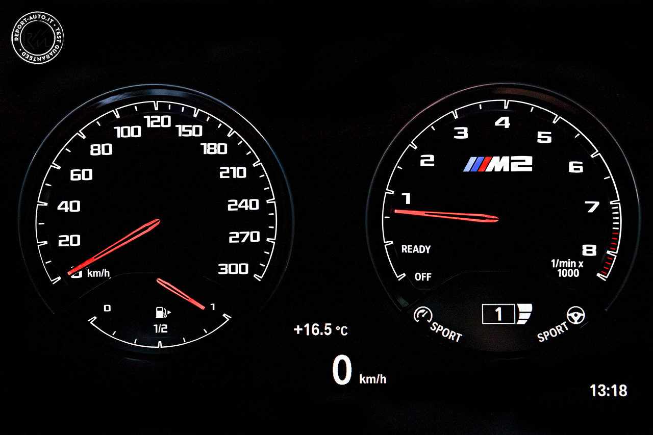 Immancabili, le pinze freno M Sport, i sedili avvolgenti con poggiatesta integrato e logo M2 impresso sullo schienale, e pulsanti per setting sterzo e motore, posti sul tunnel centrale.