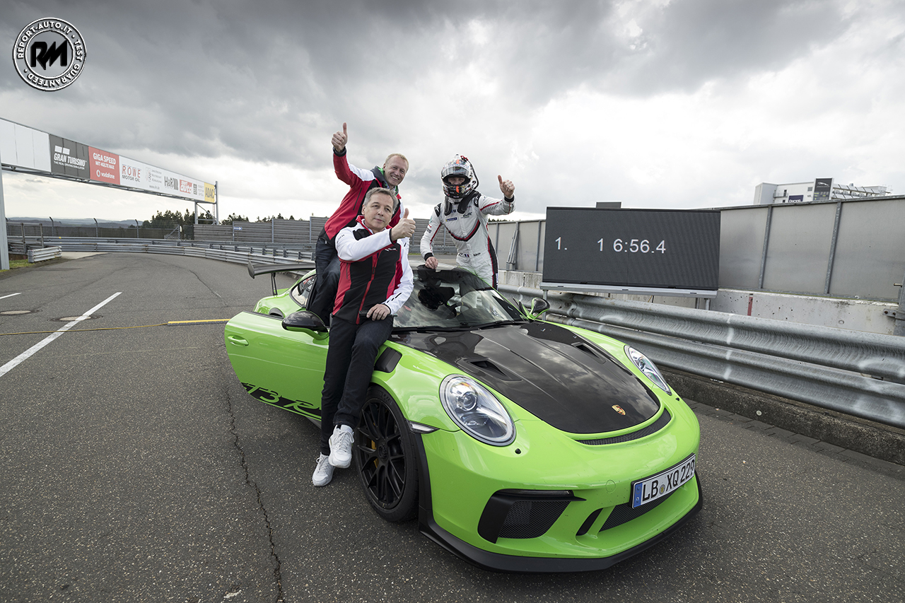Il tempo sul giro del francese è risultato di 24 secondi più veloce del miglior tempo conseguito con il precedente modello GT3 RS . Estre era affiancato alla guida della vettura dal pilota Porsche Lars Kern. Dopo la 918 Spyder e la 911 GT2 RS , la nuova GT3 RS è la terza sportiva Porsche a registrare un tempo sul giro ufficiale inferiore ai sette minuti sul circuito di gara più impegnativo al mondo, noto anche come ‘Inferno verde’. Come avviene di solito quando si cerca di battere un record, il tempo è stato rilevato sul giro di 20,6 chilometri.