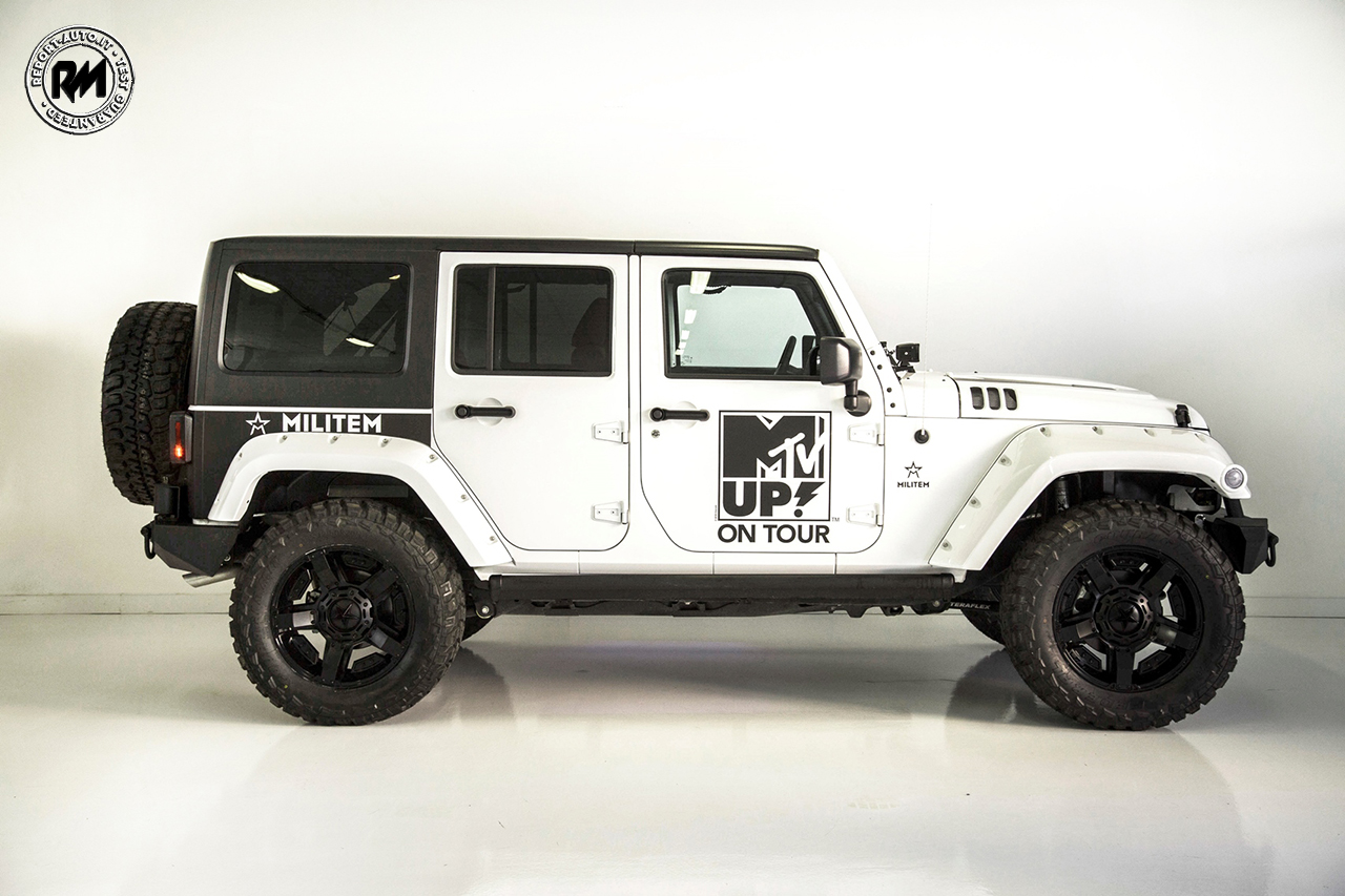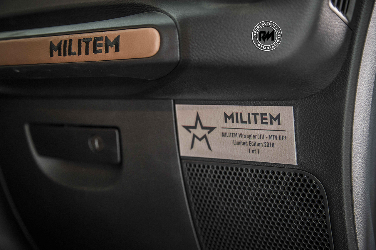 Questa MILITEM Wrangler JIII MTV UP! è realizzata su base meccanica Wrangler Unlimited, a passo lungo. Ha il motore diesel 2.8 CRD 16V da 200 CV abbinato al cambio automatico. Il veicolo è completamente rivisto nell’assetto e in parte della componentistica, sempre rigorosamente americana, mentre gli interni sono trasformati e arricchiti secondo il gusto, l’eleganza, e l’artigianalità tipicamente “made in Italy”.