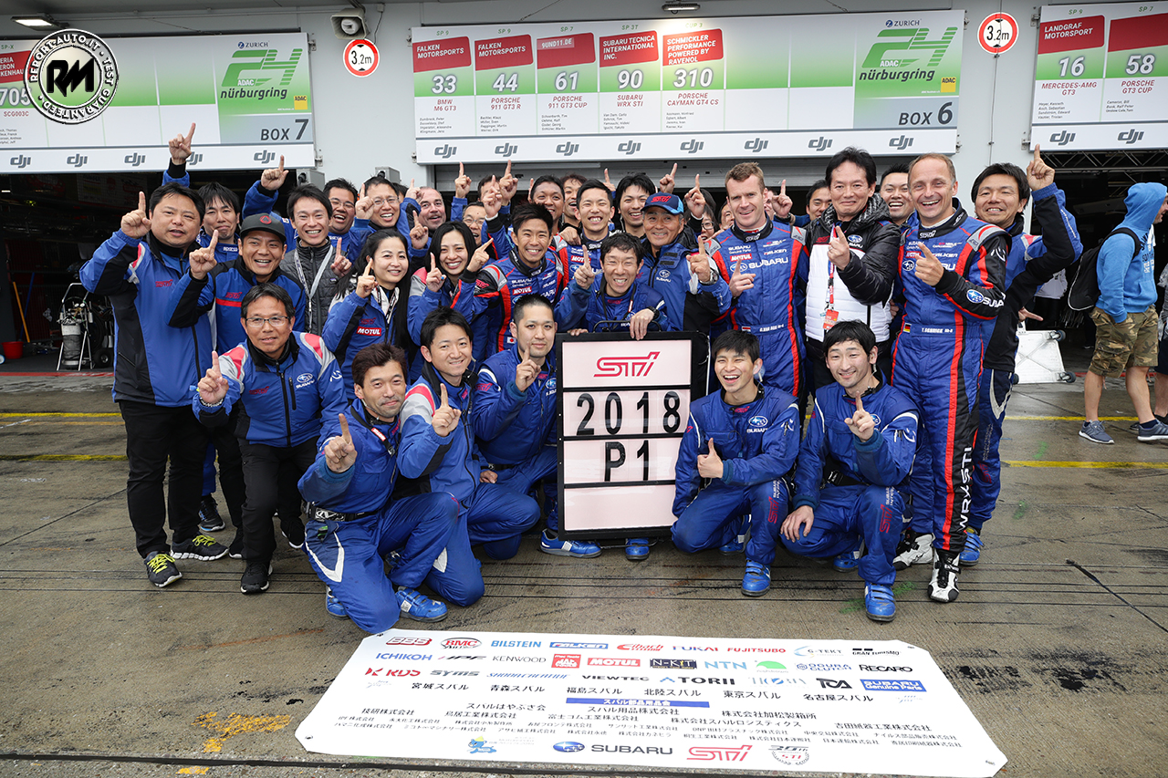 Anche se alcuni problemi meccanici hanno caratterizzato la prima parte della gara con un fermo ai box, il team3 di meccanici – 6 dei quali scelti fra la rete di vendita Subaru in Giappone – è stato in grado di risolverli e l’auto, tornata in gara e condotta dai 4 piloti Carlo van Dam (Paesi Bassi), Tim Schrick (Germania), Hideki Yamauchi (Giappone) e Takuto Iguchi (Giappone), ha chiuso il gap con la testa riguadagnando la prima posizione alla 10a ora dall’inizio della massacrante gara.