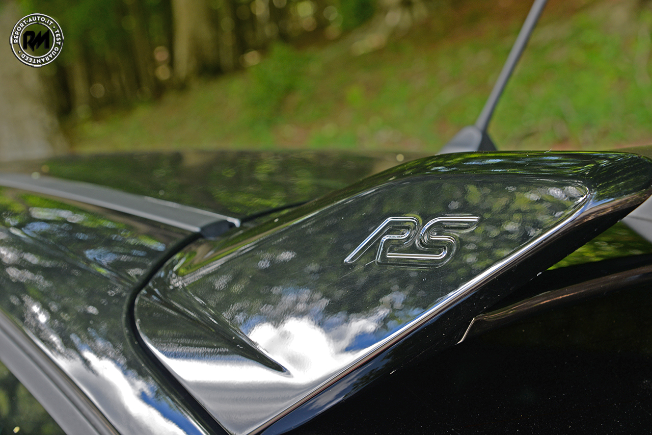 Presa d’aria frontale, convogliatori aria laterali, paraurti pronunciato ed un logo, RS , che lascia intendere di che pasta è fatta questa cinque porte…