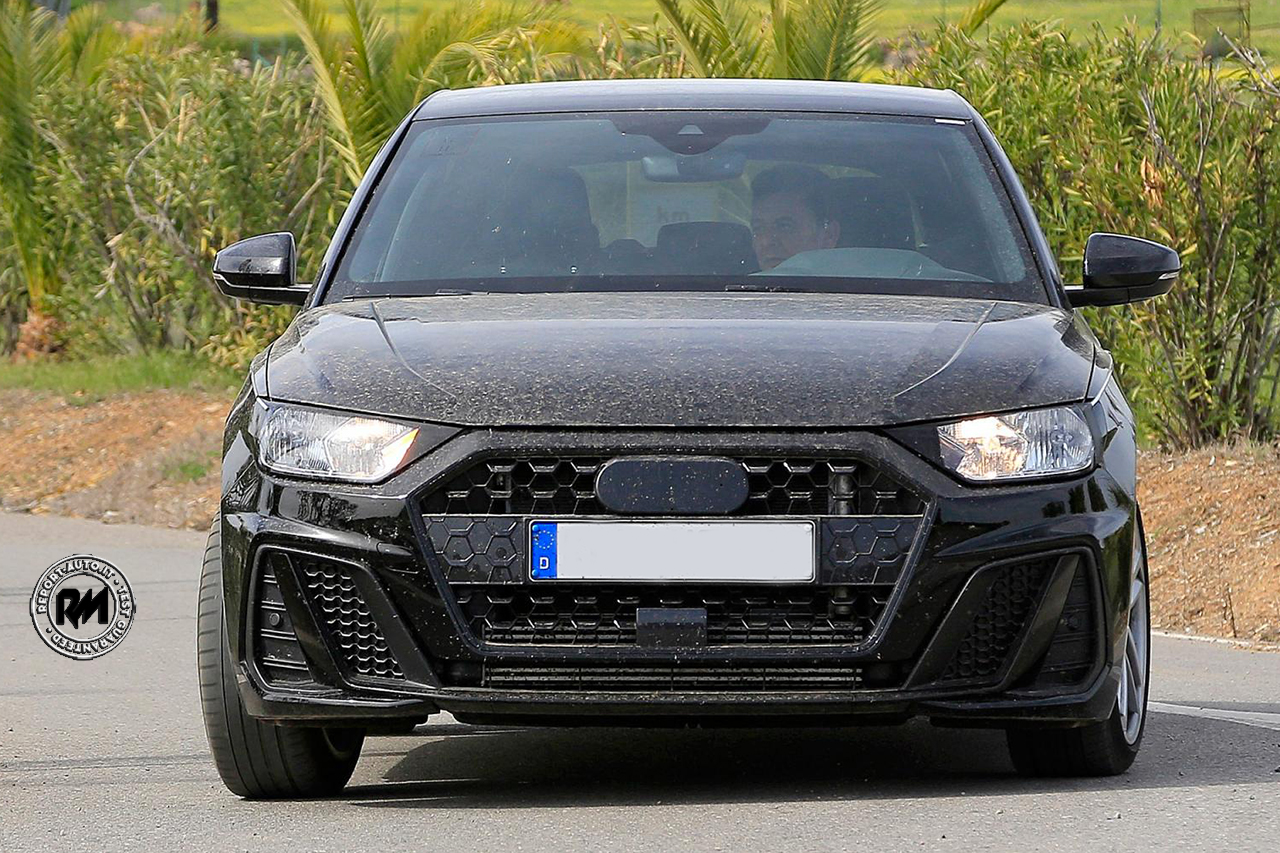 Anche se mimetizzata, la nuova Audi A1 è perfettamente assemblata e mostre le linee definitive, a cominciare dal nuovo paraurti anteriore, di dimensioni maggiorate, così come le luci e l’inedito cofano motore.