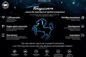 Si basa sul prototipo Mission E ed il suo nome, tradotto, significa “puledro vivace”: Taycan richiama l’immagine presente al centro dello stemma Porsche, un destriero pronto a saltare.