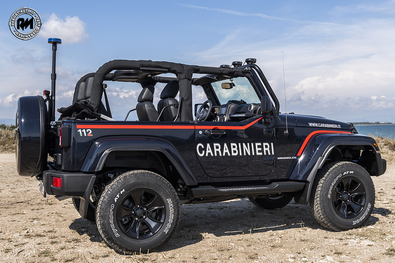 Spinta da un motore turbodiesel 2.8 CRD, la Jeep Wrangler speciale Arma dei Carabinieri è dotata cambio automatico e del performante Mopar One Pack che prevede l’assetto rialzato da 2” by Fox Performance , ammortizzatore di sterzo anteriore, cerchi in lega neri da 17 pollici Performance Gladiator , para spruzzi anteriore e posteriore, supporto lampeggiante e sirena, porta mitra e radio portatile.