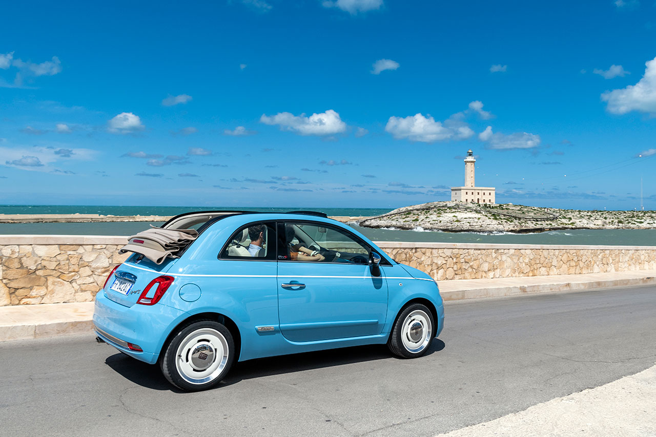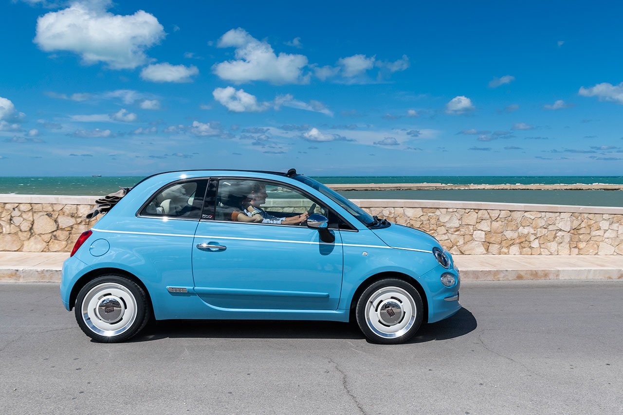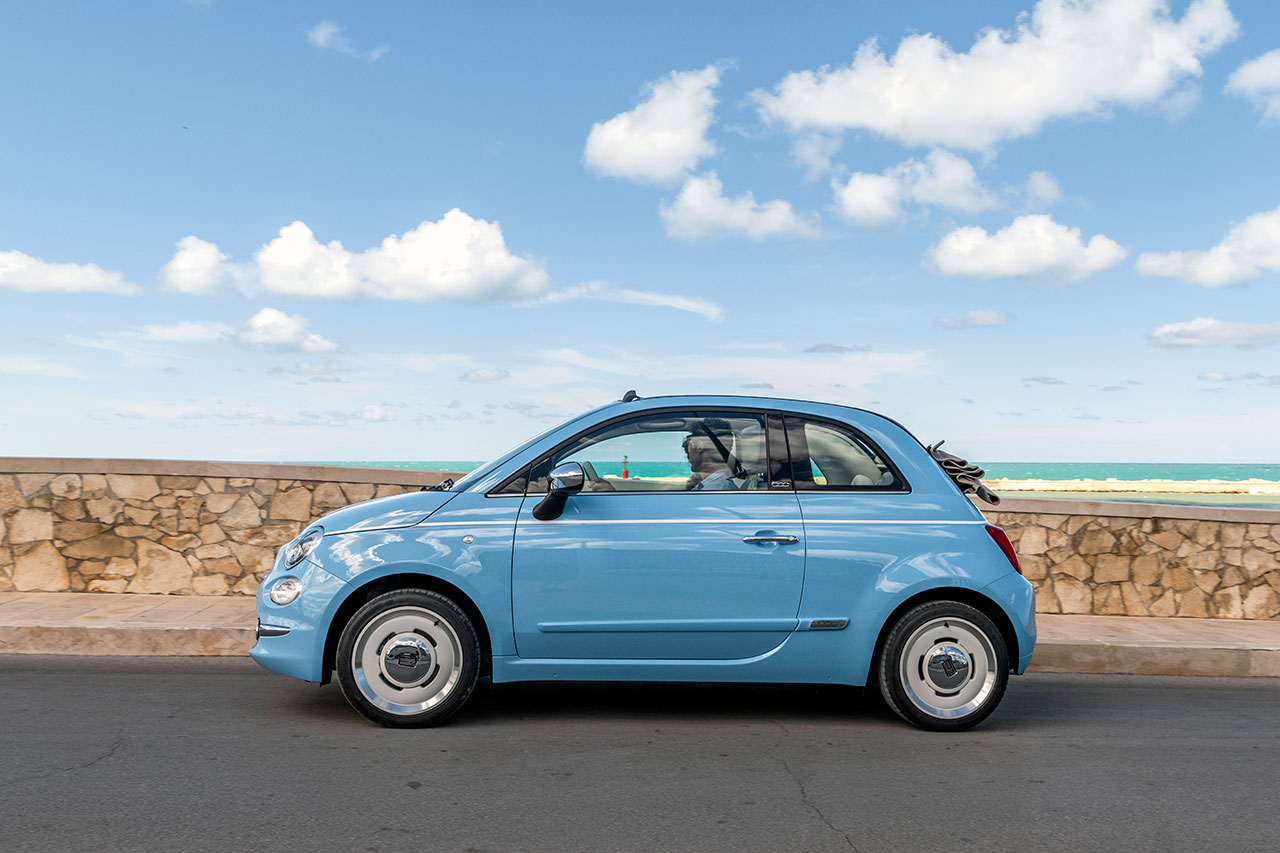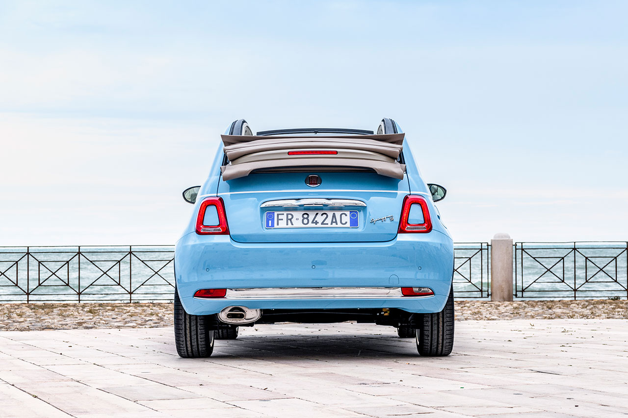 Il primo tributo di Fiat per il doppio anniversario è la nuova serie speciale Fiat 500 “Spiaggina ‘58” prodotta in edizione limitata in 1.958 unità e disponibile esclusivamente in configurazione cabrio, per godere appieno della bella stagione e del fascino di una storia scolpita nella memoria di tutti noi. E come si addice a una diva della “Dolce Vita”, la nuova serie speciale è “vestita” di una splendida livrea Azzurro Volare, con capote beige, impreziosita dalla linea di bellezza bianca e dai cerchi in lega da 16” dal disegno vintage. Esclusività cromatica che viene esaltata da altri elementi distintivi, quali la modanatura laterale con logo 500, le calotte cromate degli specchietti retrovisori, i loghi vintage e l’elegante scritta in corsivo cromata “Spiaggina ’58” sul posteriore quale “firma” dell’ultima creazione in casa Fiat.