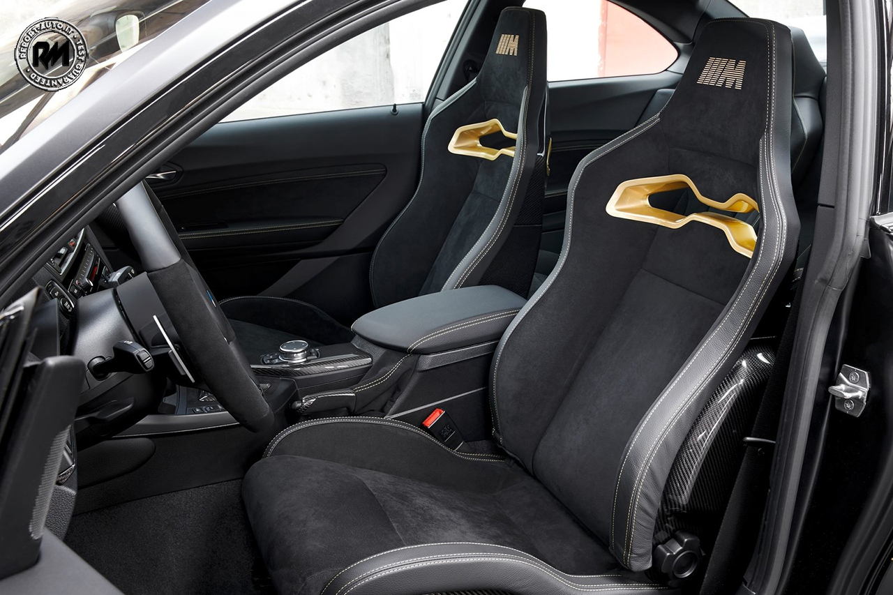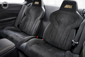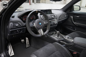 Una verniciatura Frozen Black con particolari M Performance dorati, internamente regna l’ Alcantara, così come la fibra di carbonio, materiale sintetico che oltre a coprire numerose parti della carrozzeria, ritroviamo anche come finitura su plancia e portiere.