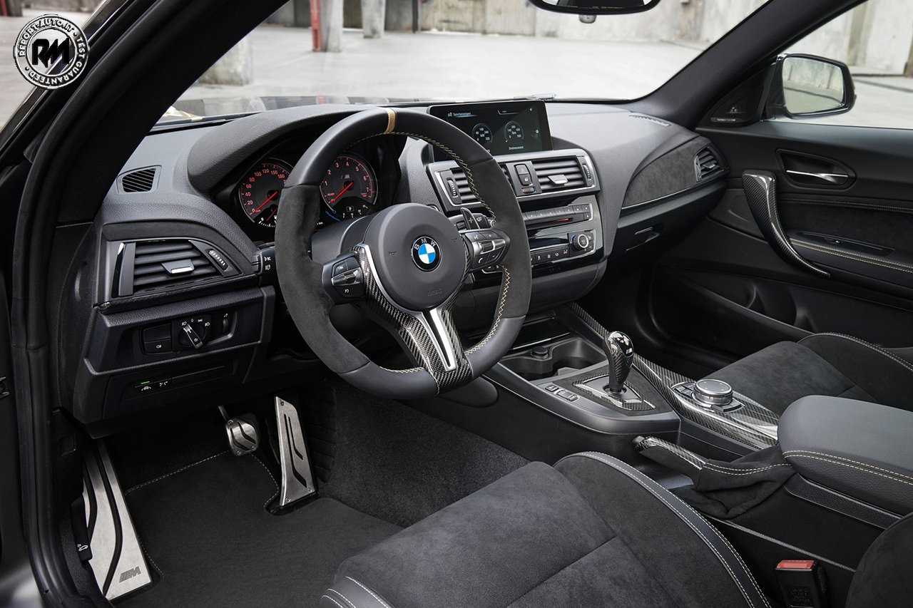 Anche il volante è specifico per la BMW M2 M Performance Parts Concept , presenta un rivestimento in Alcantara con cuciture a vista.