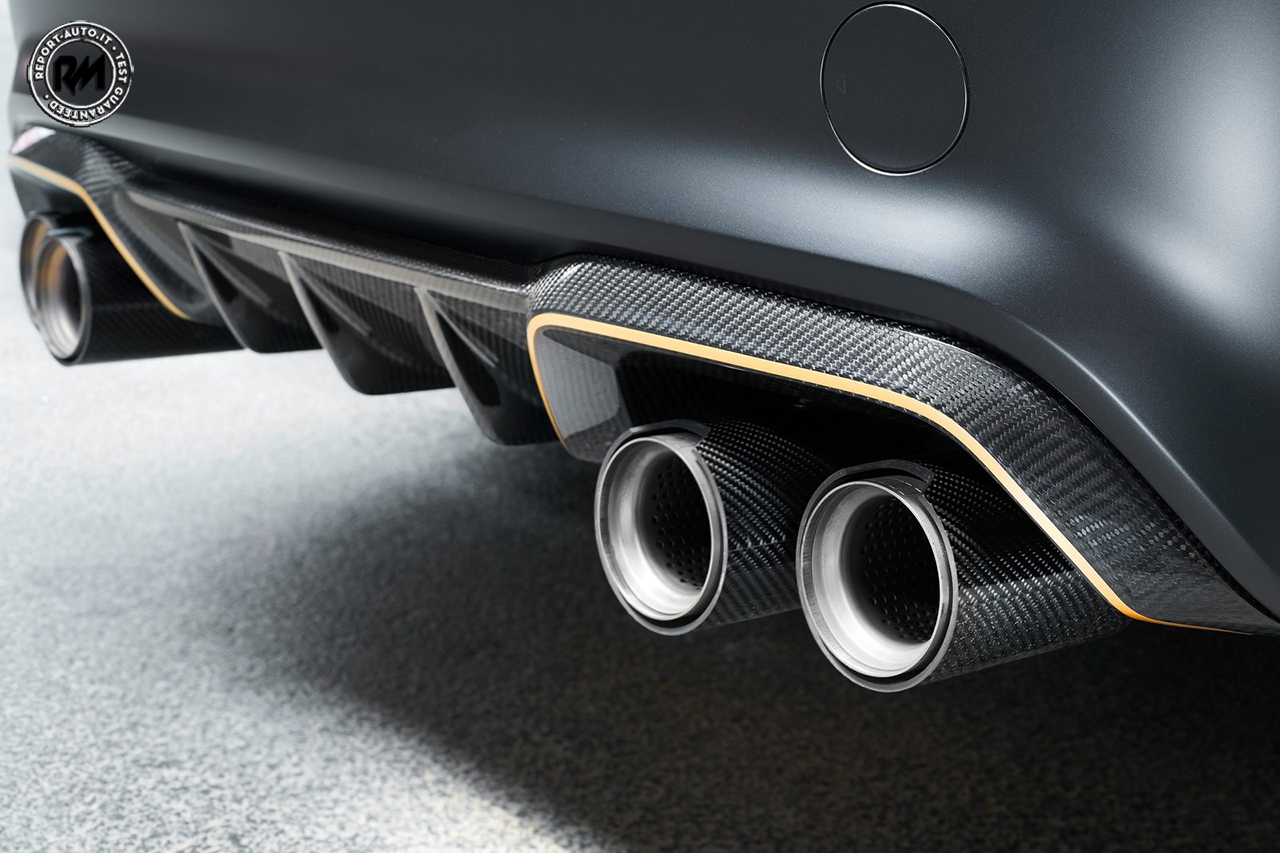 Anche al posteriore, il ricorso alla fibra di carbonio è stato consistente, dall’estrattore aria al baule, la cura dei particolari è incredibile.